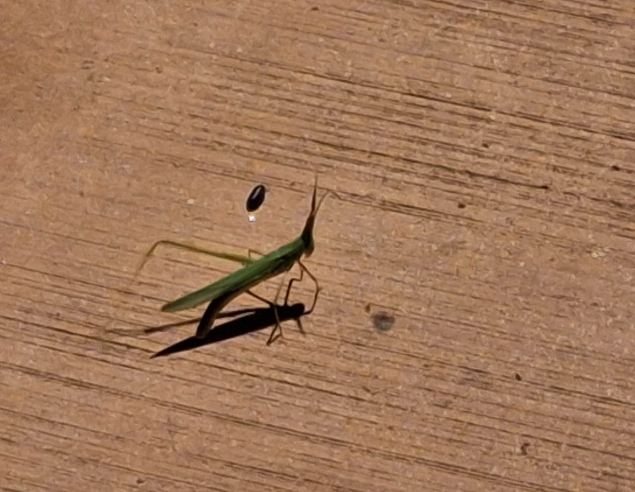길 위엔 작은 벌레들이 빠르게 움직여 몸을 감추려 하는데, 방아깨비 한 마리 미동도 하지 않는다.