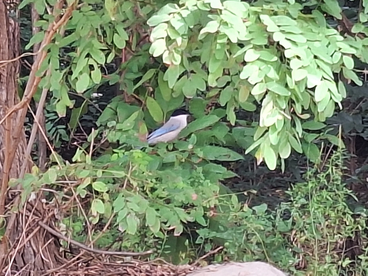 하늘색 연미복을 차려입어 더욱 멋진 산까치.