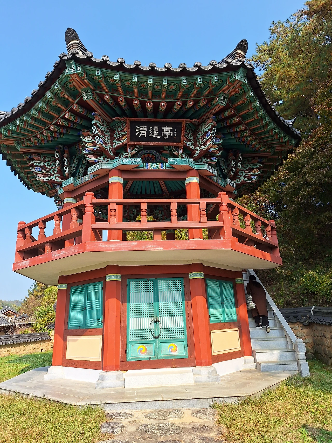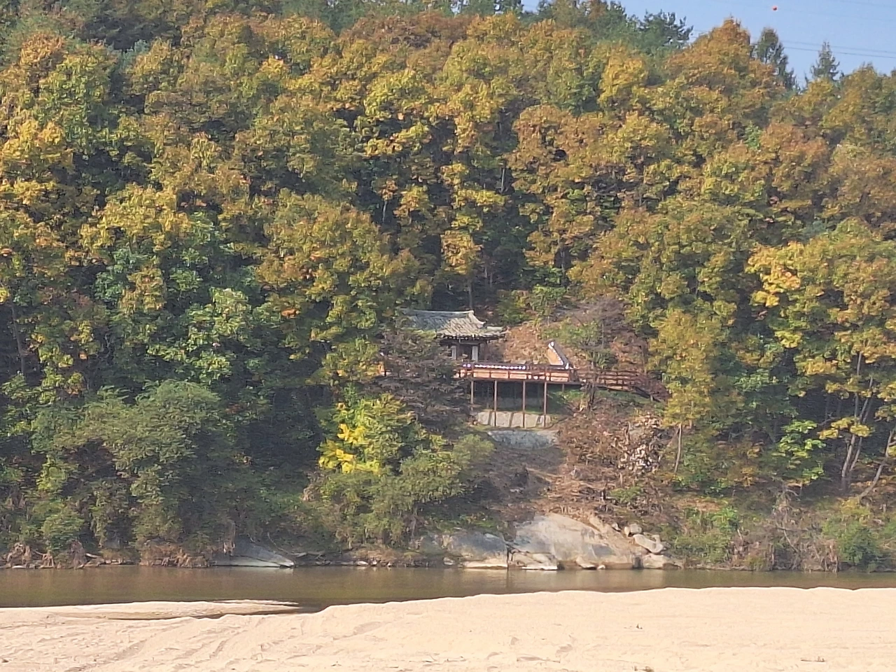 해설사의 설명으로 옛날의 사대부들은 남자들끼리만 계모임을 하고 정자를 지어 그곳에서 시조를 짓고 노래하며 즐겼다고 한다. 돌로만 지었다는 청퇴정(淸退亭)에 오르니 무섬 마을의 정경과 강 건너의 암반 위에 지은 집이 고스란히 눈 안으로 들어왔다. 마치 선경(仙境)처럼.