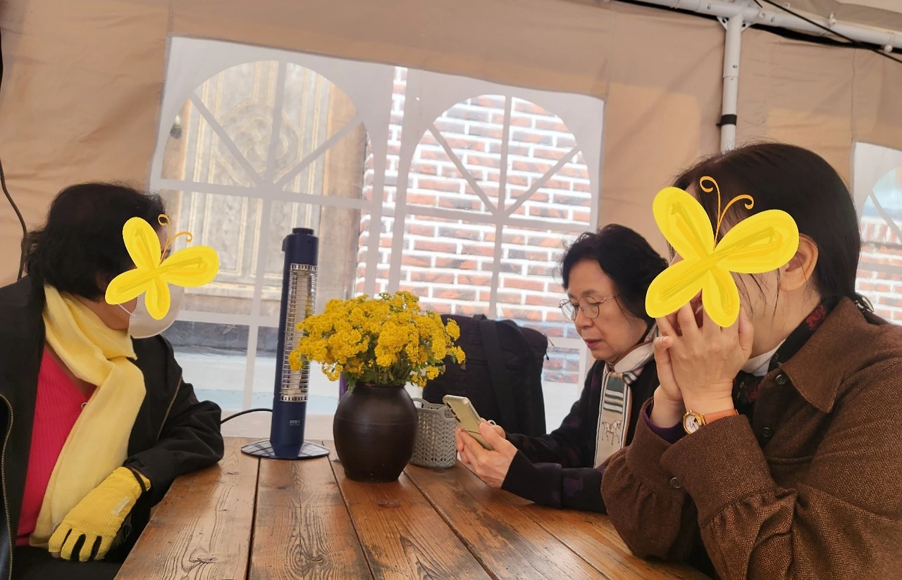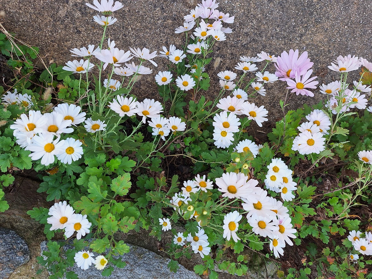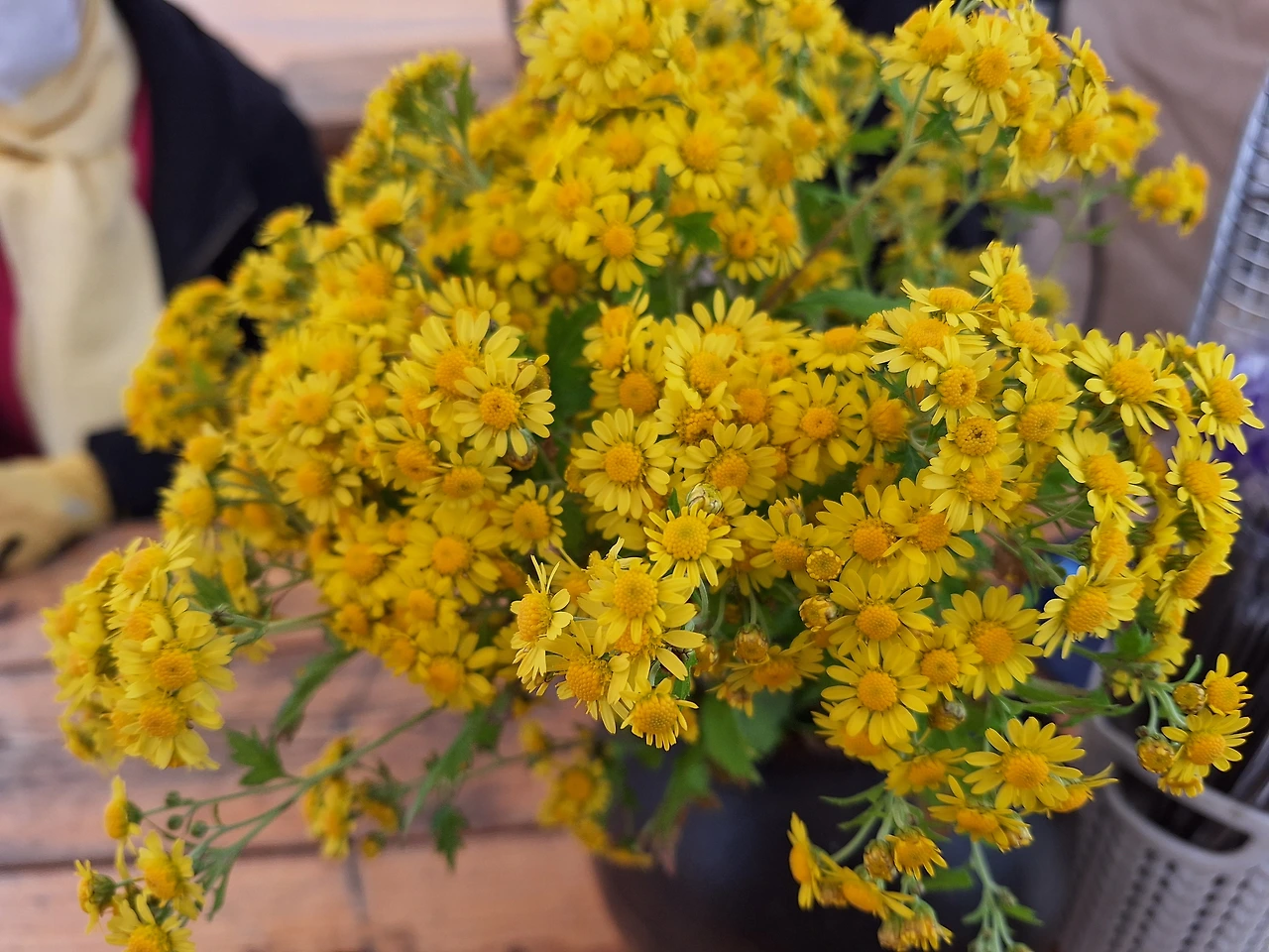 점심 식사를 맛있게 하고 카페를 찾았으나 초가카페 한 군데가 있다. 하지만 초가는 안 보이고 온실처럼 만든 천막 카페에서 커피를? 한옥의 주방에서 커피를 내려 나오는 안주인의 커피맛은 예상외로 커피맛이 좋아 우린 기분이 좋아졌다. 다탁마다 노란 산국, 들꽃을 한 아름 꽂아 놓은 초가 카페에서 커피를 취향대로 마시고 길을 나선다.