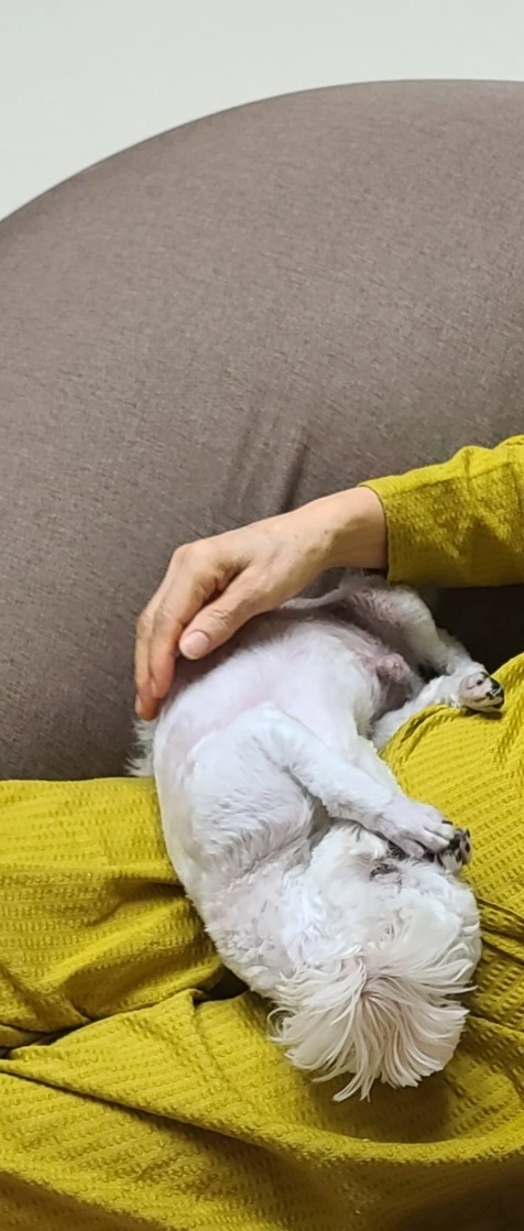 *하양이는 지난봄에 한 번 보고 이번에 두 번째로 만났는 데 완전 할미 바라기가 되어 내 무릎에서 떠나질 않는다. 딸은 신기해했다. 예전에 호야도 첫날부터 엄마에게 안기고 좋아하더니 하양이도 그런다고. 가족들 옆에 누워 잠은 자도 무릎에서 잠을 잔 적이 없다는 하양인 완전 무방비 상태로 내 품에 안겨 늘어져 잠을 자는 모습에 웃음만 났다.