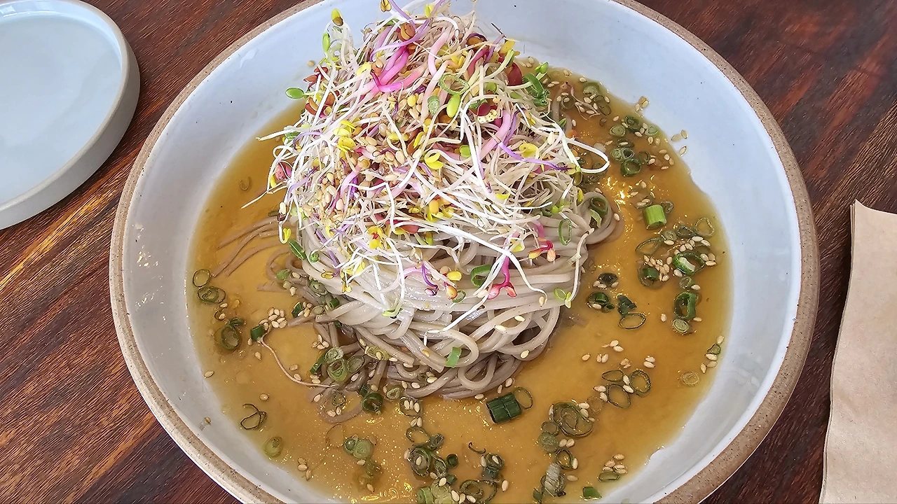 "그렇네, 깔끔하다. 막국수처럼 강렬한 맛은 없어도 신선한데~"