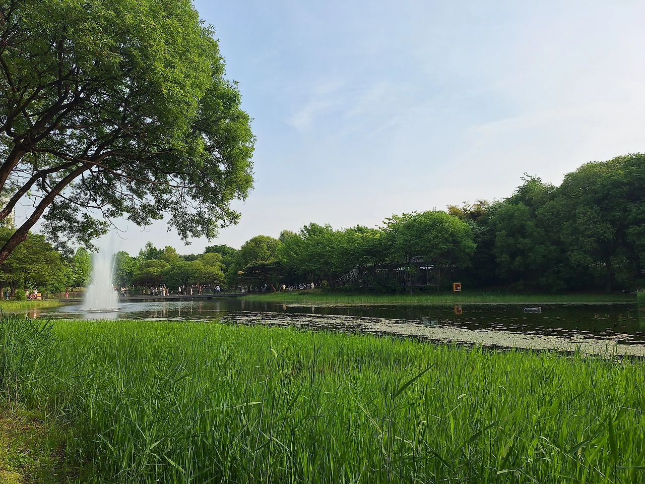 마침 습지의 분수가 시원히 하늘 향해 물줄기를 쏘아 올려 마치 행운처럼 느껴진다.