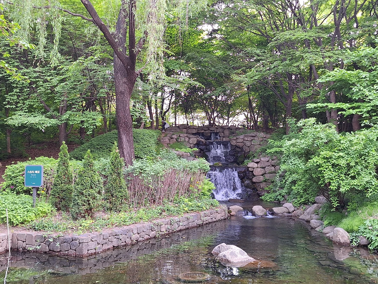 졸졸졸 물 흐르는 소리가 들려 가보니 <소원의 폭포> 팻말이 보이고 작은 폭포에서 물이 쉼 없이 흐른다.