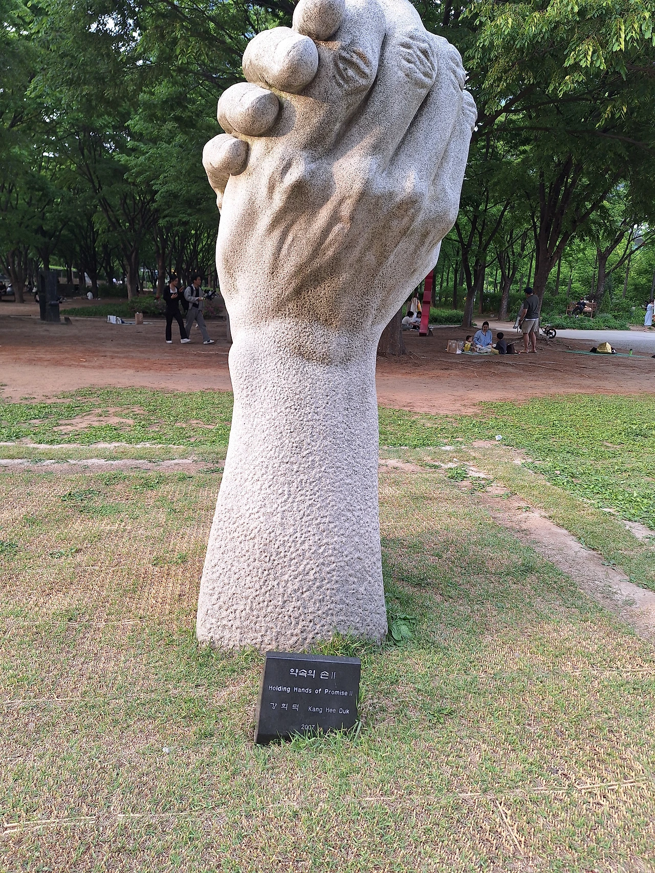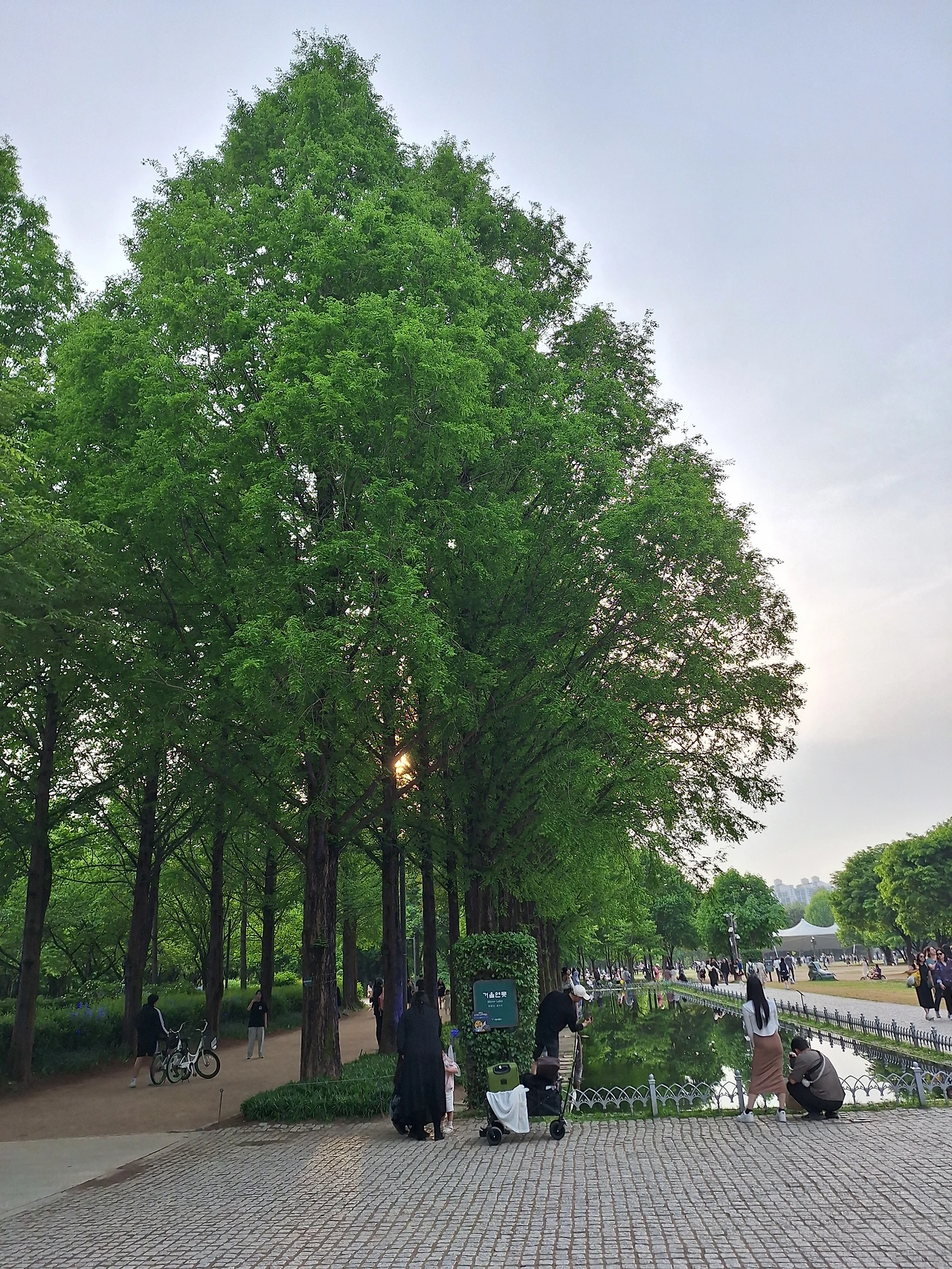 휴일이어서 사람들이 무척 많다. 가족 단위로 나온 분들이 많았다. 숲엔 돗자리로 메워져 있을 정도로 많았으며, 평상이나 기다란 나무 의자에도 연인끼리 친구끼리 모두 삼삼오오 짝을 지어 앉아 담소를 나누는 정경, 산책하며 즐거워하는 모습들이 눈에 들어왔다.
