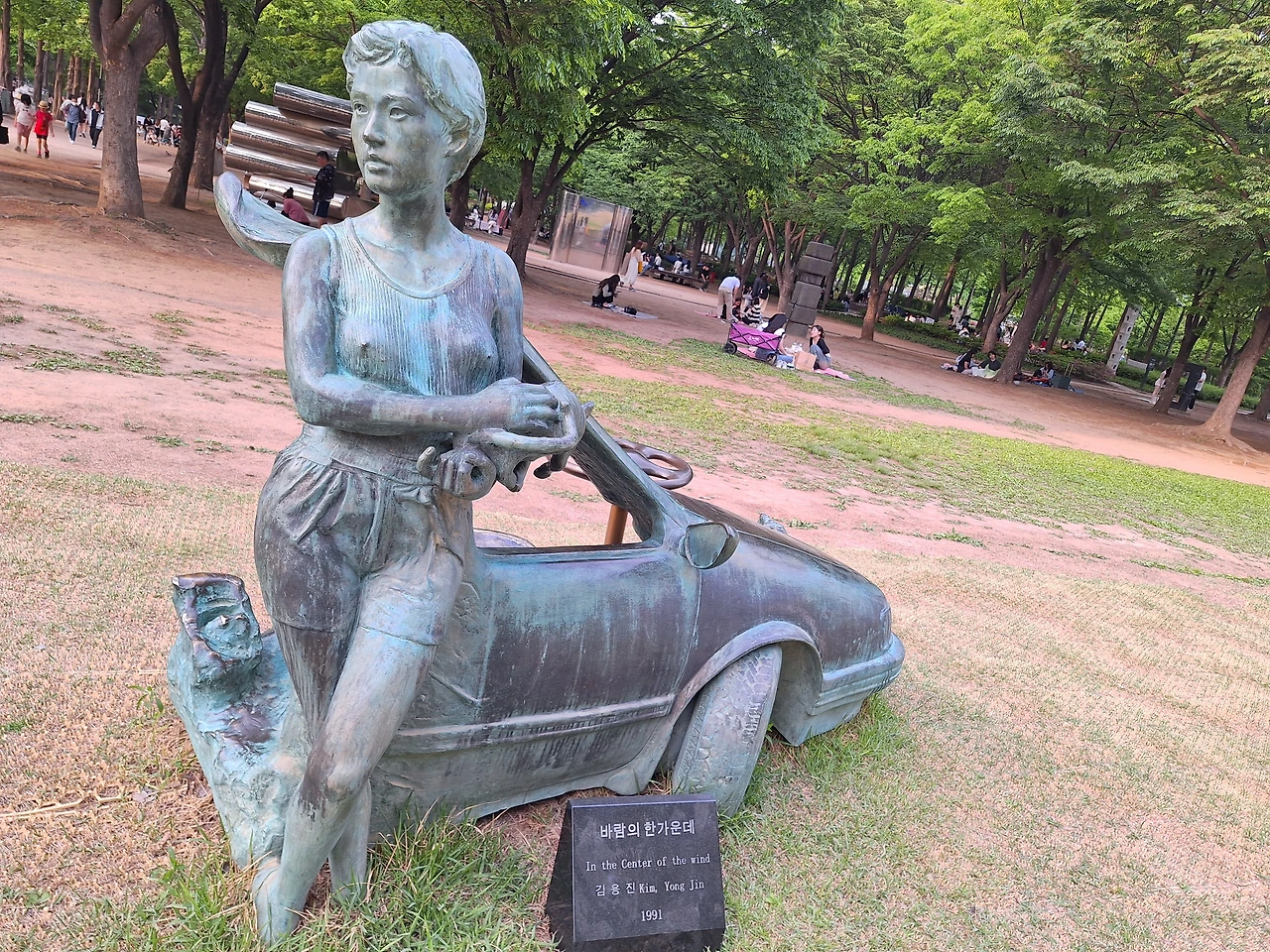 여기저기서 모델들과 전문 사진작가들이 사진 작품 만들기에 여념이 없었고 그중 1인은 군데군데 설치 되어 있는 조각 작품 감상하기에 이른다.