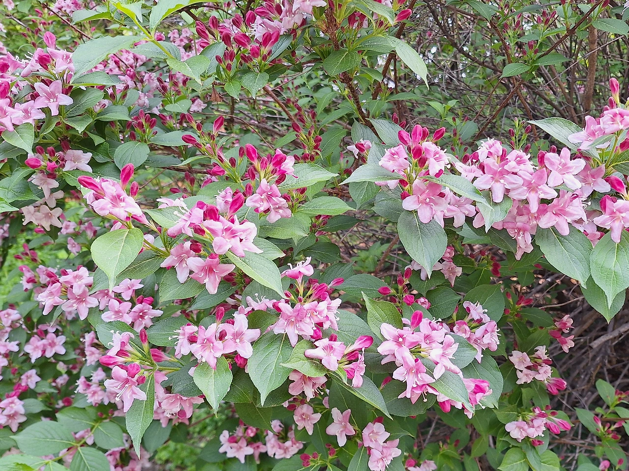 한강변으로 나가는 자전거 길 따라가 보니 병꽃나무가 반가워한다. 이 아이는 분홍꽃을 소담스레 피워내고는