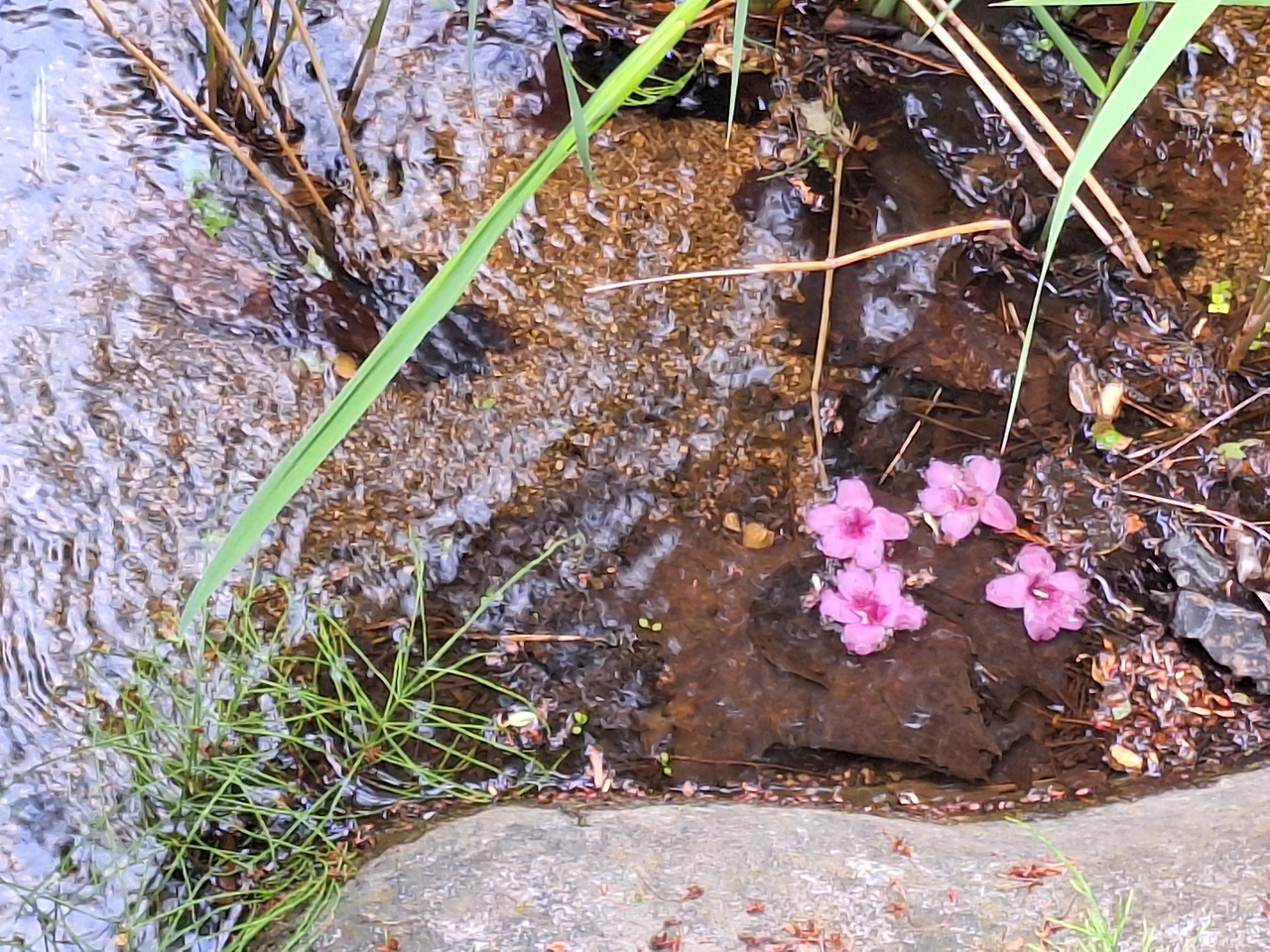 쪽동백나무 밑 도랑물엔 어디서 날아왔는지 영산홍 꽃잎이 그림 같은 풍경을 만들어 감탄을 자아낸다.