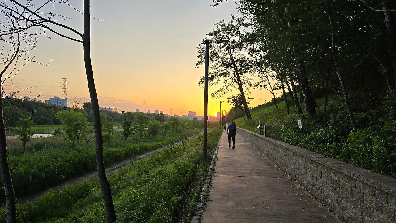 길에서 시간을 안 보낸다며 탄천을 산책하자는 딸.