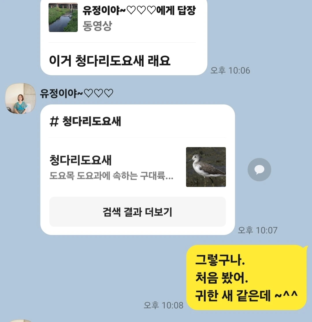 집에 돌아간 딸은 아까 찍은 도요새가 청다리 도요새라며 알려준다. 새소리만 들어도 무슨 새인지 대략 아는 딸은 막내로 애교도 많고 또랑또랑한 목소리로 노래하듯 많은 얘기를 술술 들려주고 갔다.
