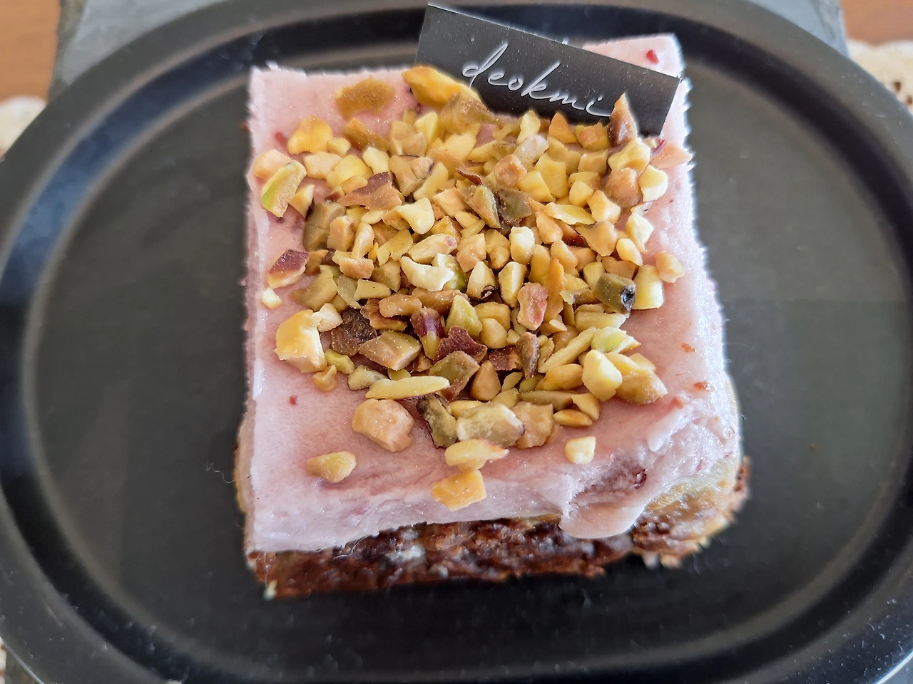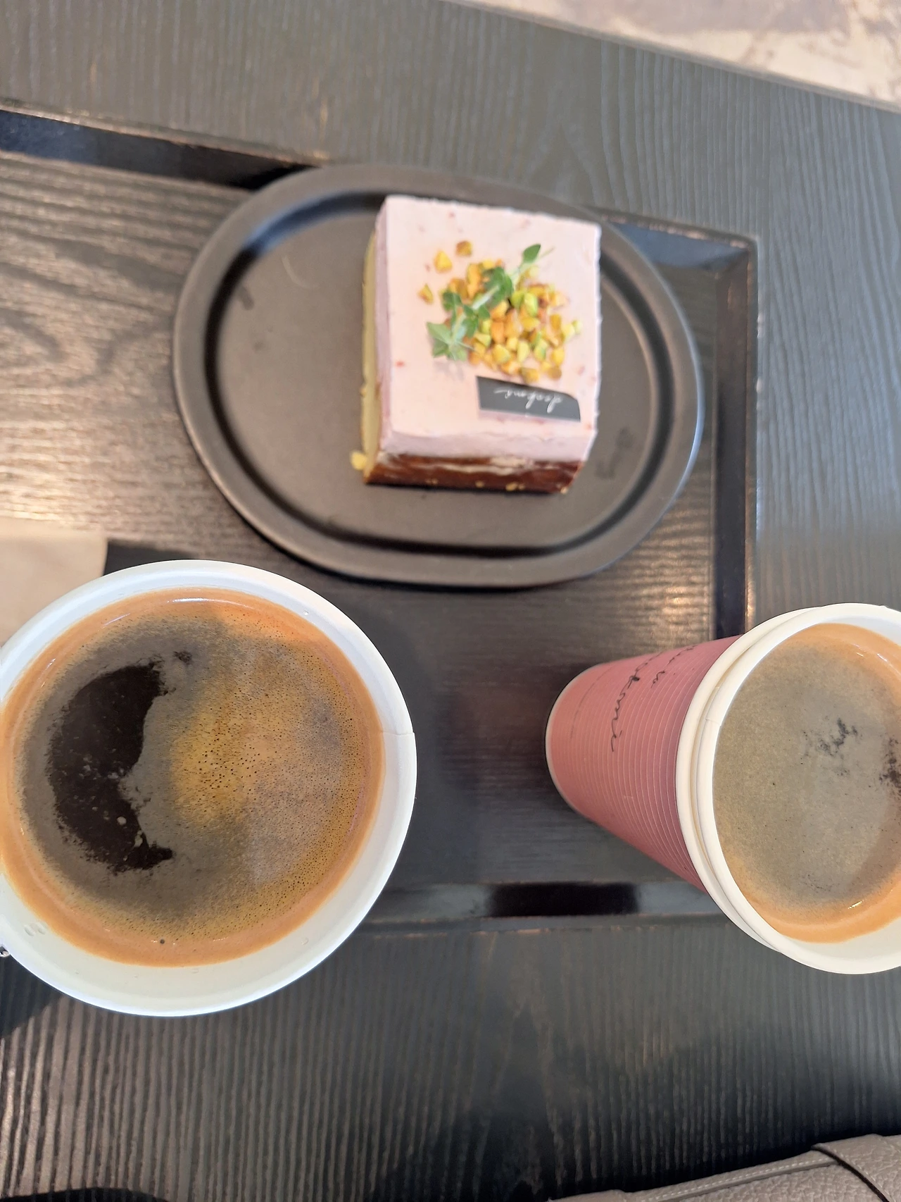 눈치 없이 내 생각(단거 안 먹, 케이크 안 먹.)만 하고 커피 두 잔만 주문했는데 향숙 씨가 맛보라고 많이 달지 않다며 피스타치오 케이크를 몰래 주문했다.