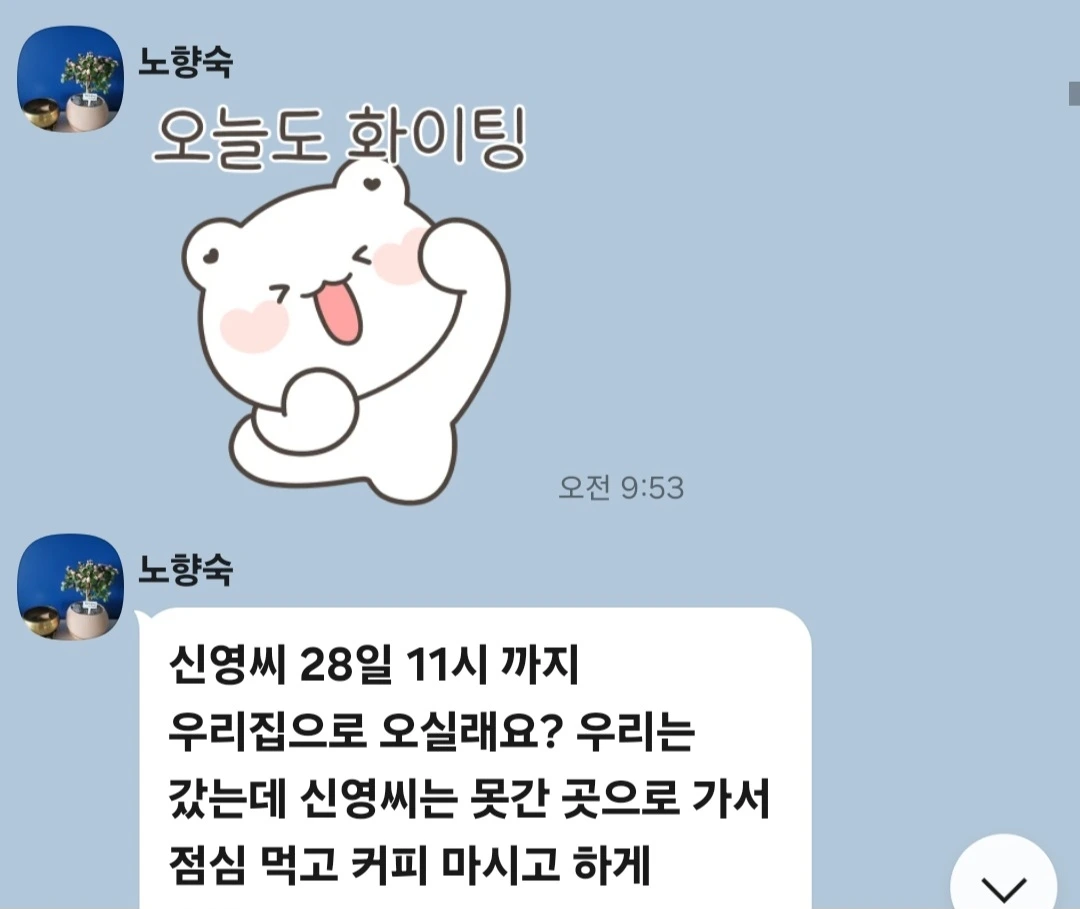 용원에서 올라와 합류하게 될 나를 위해 향숙 씨는 다시 메시지를 보내온다.