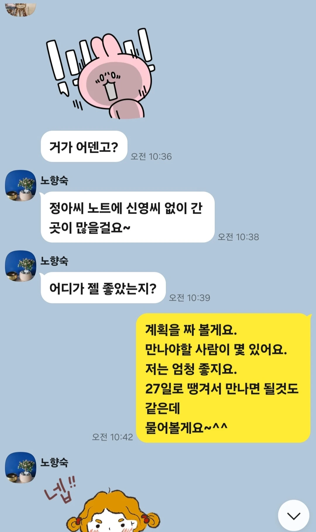 멀리 떨어져 있어 셋이 만났던 근사한 장소에 가지 못한 나를 위해 배려하는 마음이 전해져 잔잔한 감동의 물결이 인다. 무조건 오케이다.