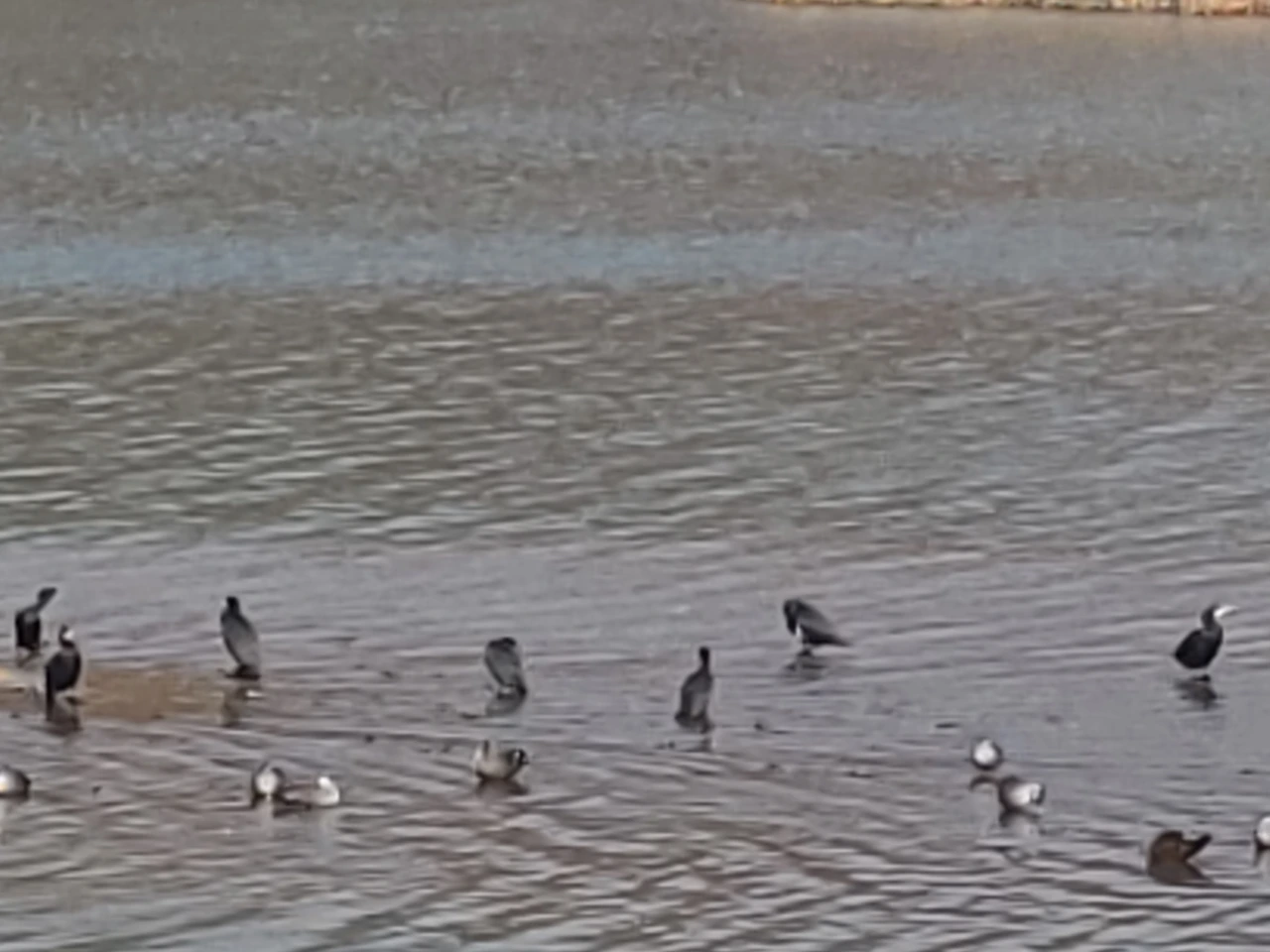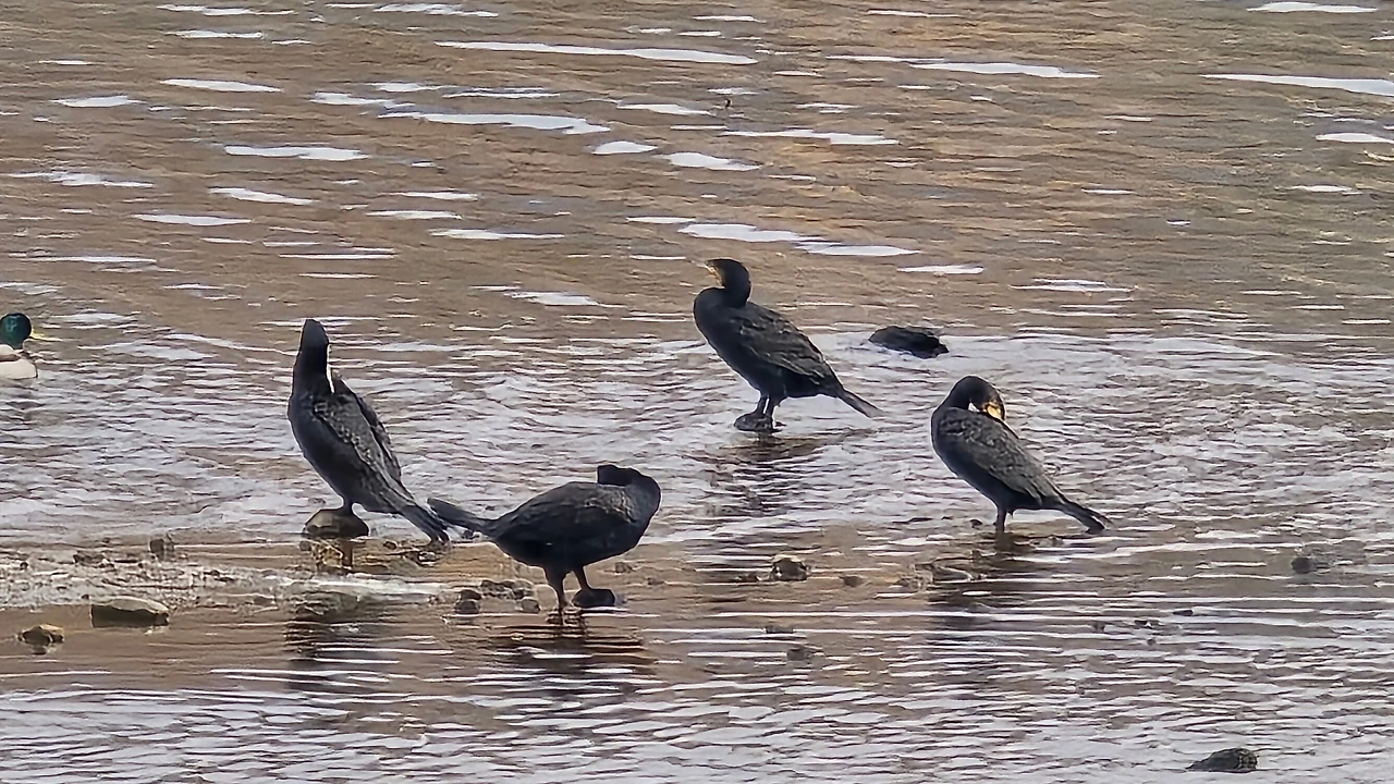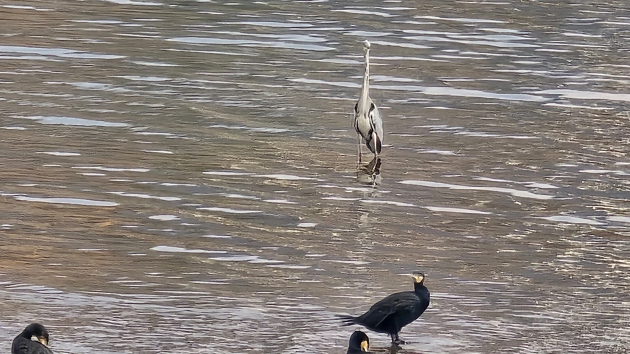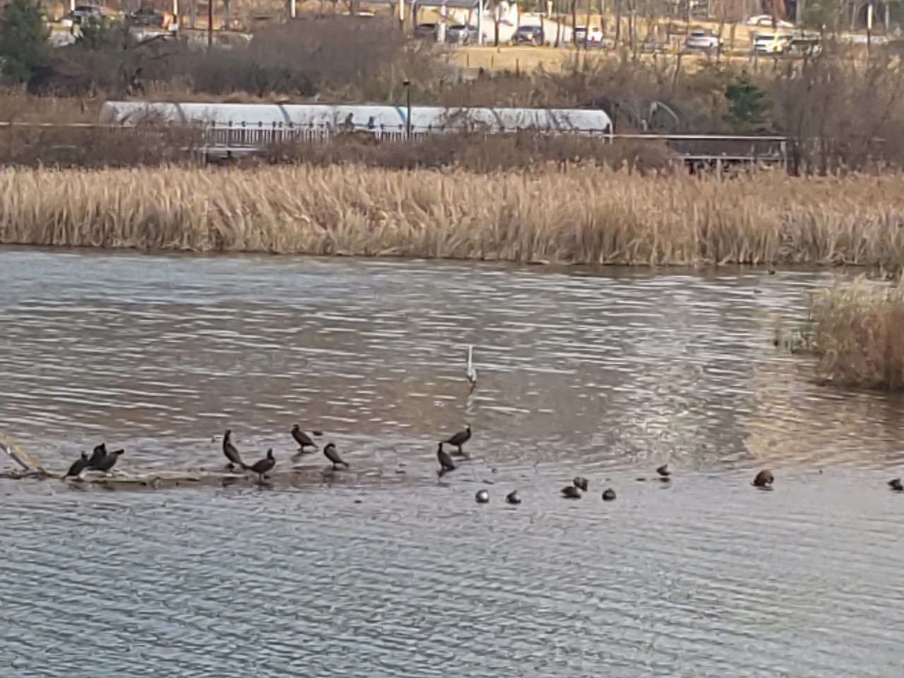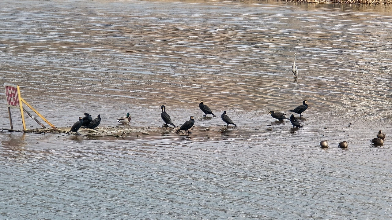 모래톱엔 가마우지와 청둥오리들이 짝을 지어 쉬고, 멀지 않은 곳엔 왜가리 한 마리가 길게 목을 고정한 채 미동도 않는다.