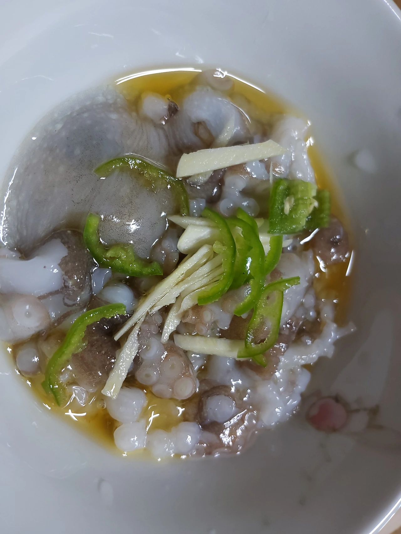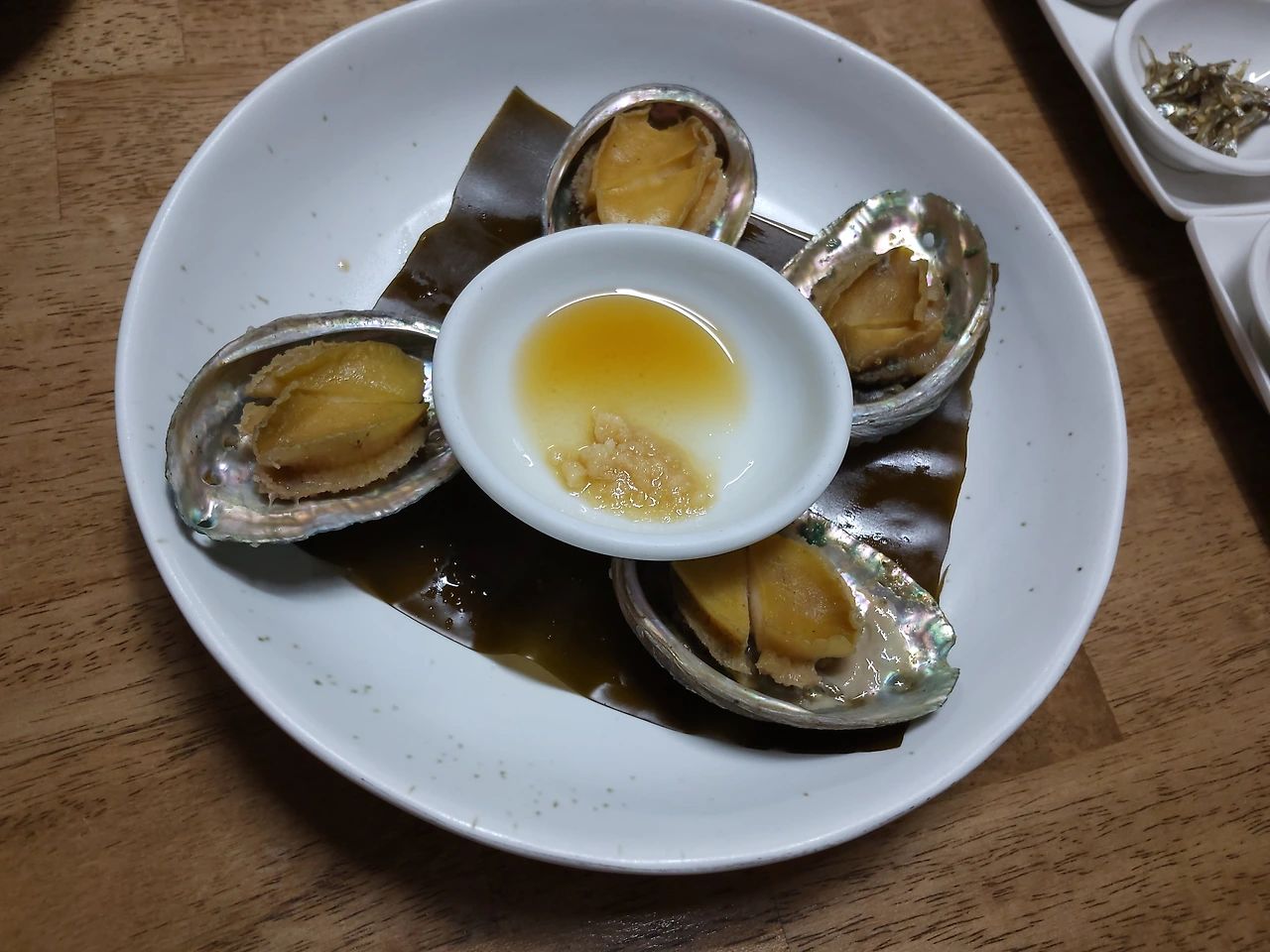 우리가 주문한 <대통영 밥상> 반상은 놀라울 정도로 풍성했다. 처음 접해보는 홍어삼합에 전복찜, 육전, 낚지 탕탕이, 새우튀김, 보리굴비까지.... 이걸 다 먹을 수 있을까 싶을 정도였다. 의외였던 것은 홍어삼합이었다. 삭힌 특유의 향 때문에 겁을 냈지만, 입에 넣자 불쾌함 없이 오히려 조화로운 맛이 남았다. 한 접시가 더 나온다 해도 먹을 수 있을 것 같았다.