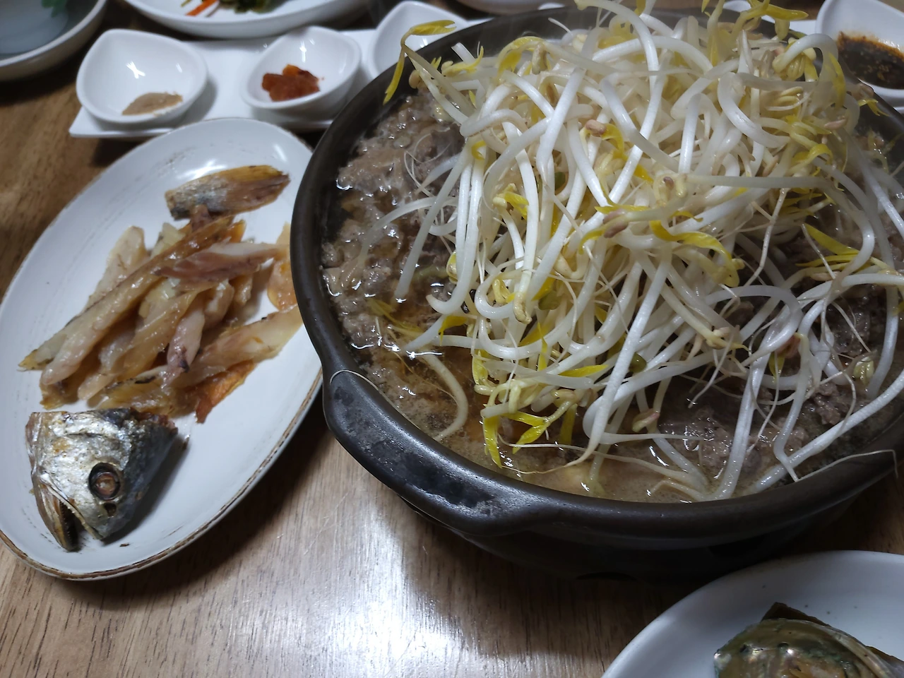쇠고기 전골은 향이 깊었고, 그 안엔 버섯과 채소가 아낌없이 들어 있었다. 반찬들은 간이 세지 않고 심심해 오래 먹어도 질리지 않았다. 배추김치는 구매욕이 일어날 정도로 맛이 있고, 열무김치는 질기지 않아서 모두가 좋아했다. 된장국은 구수하면서도 시원했다. 음식 하나하나 흠잡을 데 없었고, 먹는 동안 우리는 허겁지겁이 아니라 천천히 감탄하며 숟가락을 움직였다.
