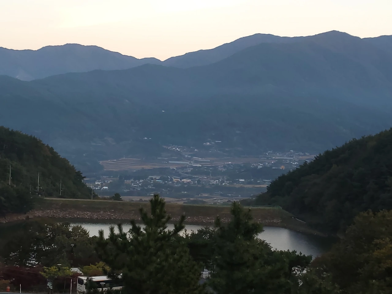언덕 아래로는 호수처럼 고요한 저수지가 내려다보였고, 그 너머로 낮게 몸을 숨긴 마을이 있었다. 밤이 되면 그 마을의 불빛이 별처럼 흩뿌려질 터였다. 아직 불이 켜지지 않았는데도, 이미 아름다울 것을 예감하게 하는 풍경이었다.