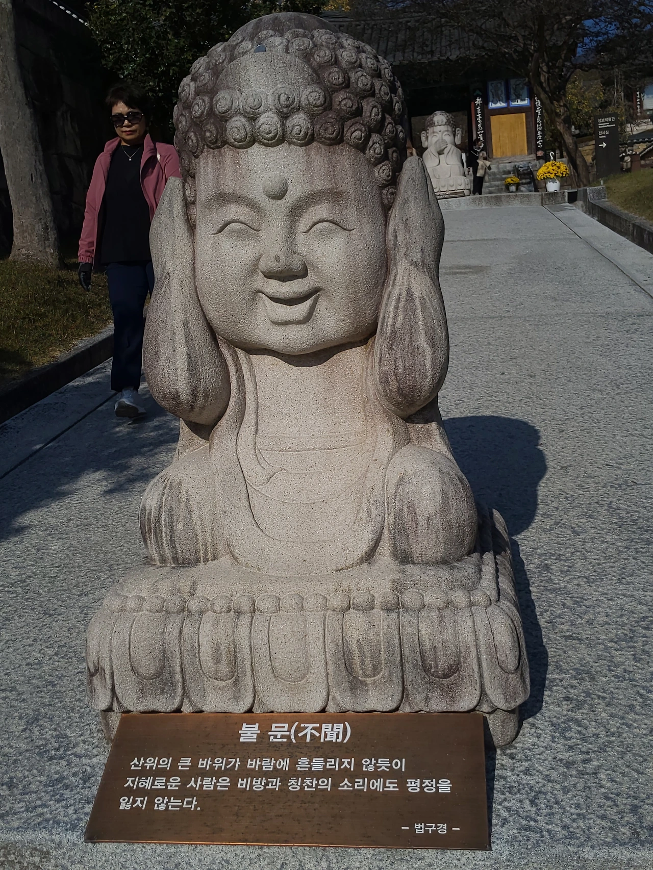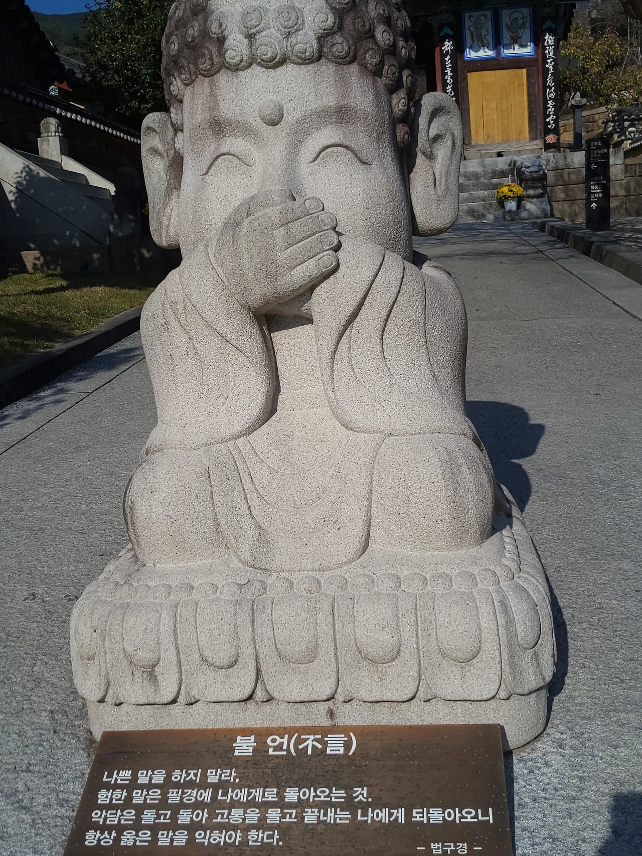 동상 아래에는 부처님의 가르침이 짧은 문장으로 새겨져 있었다.