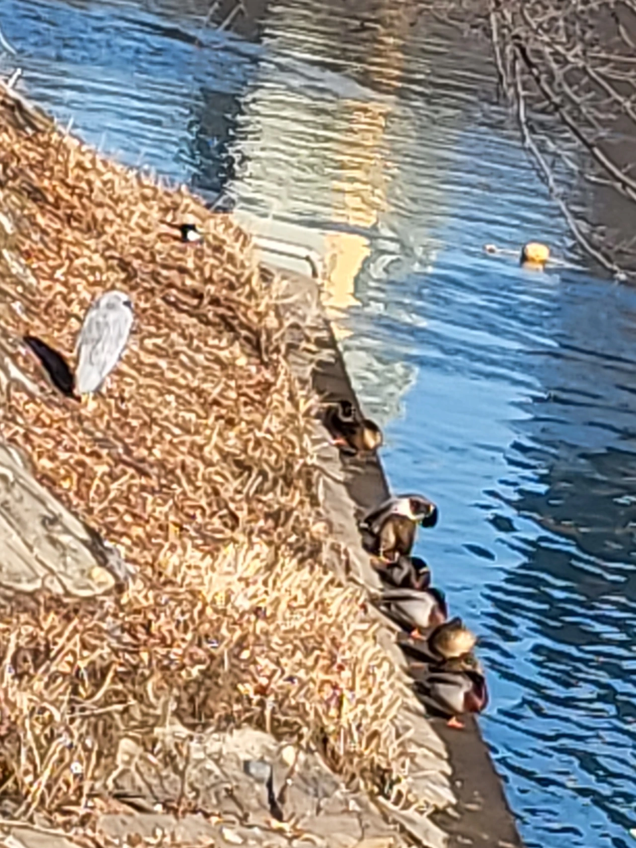 어제는 강추위 속에서도 햇볕이 잘 드는 둔덕 위에 왜가리가 서 있었고, 그 아래 물가에는 오리들이 줄지어 있었다. 보기 좋았다. 가끔 갈매기가 날아와 곁에 앉아도 아무도 내치지 않았다. 자기 영역을 지키면서도 품을 줄 아는 너희의 느긋함이 부럽기도 하다.
