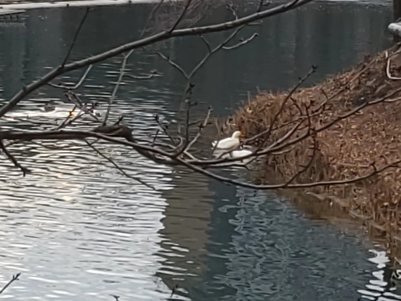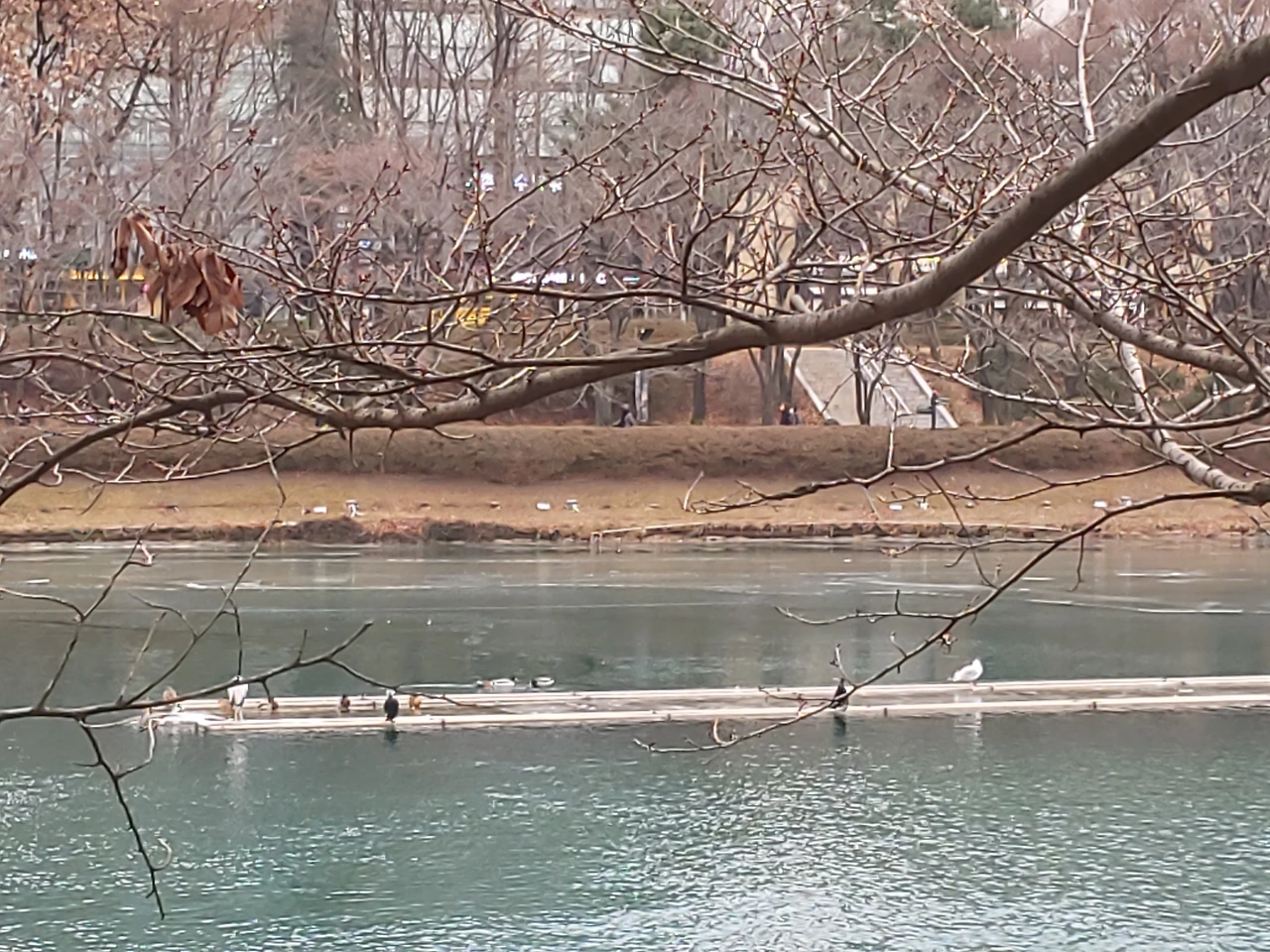 검은 물닭이 불쑥 모습을 드러내기도 하고, 요즘에는 아기 오리 세 마리가 어른오리들과 조금 떨어진 곳에서 물 위를 동동 떠다닌다. 앙증맞은 몸짓을 보고 있자면 저 작은 생명들도 이 겨울을 지나면 제법 듬직해지겠지 싶다.