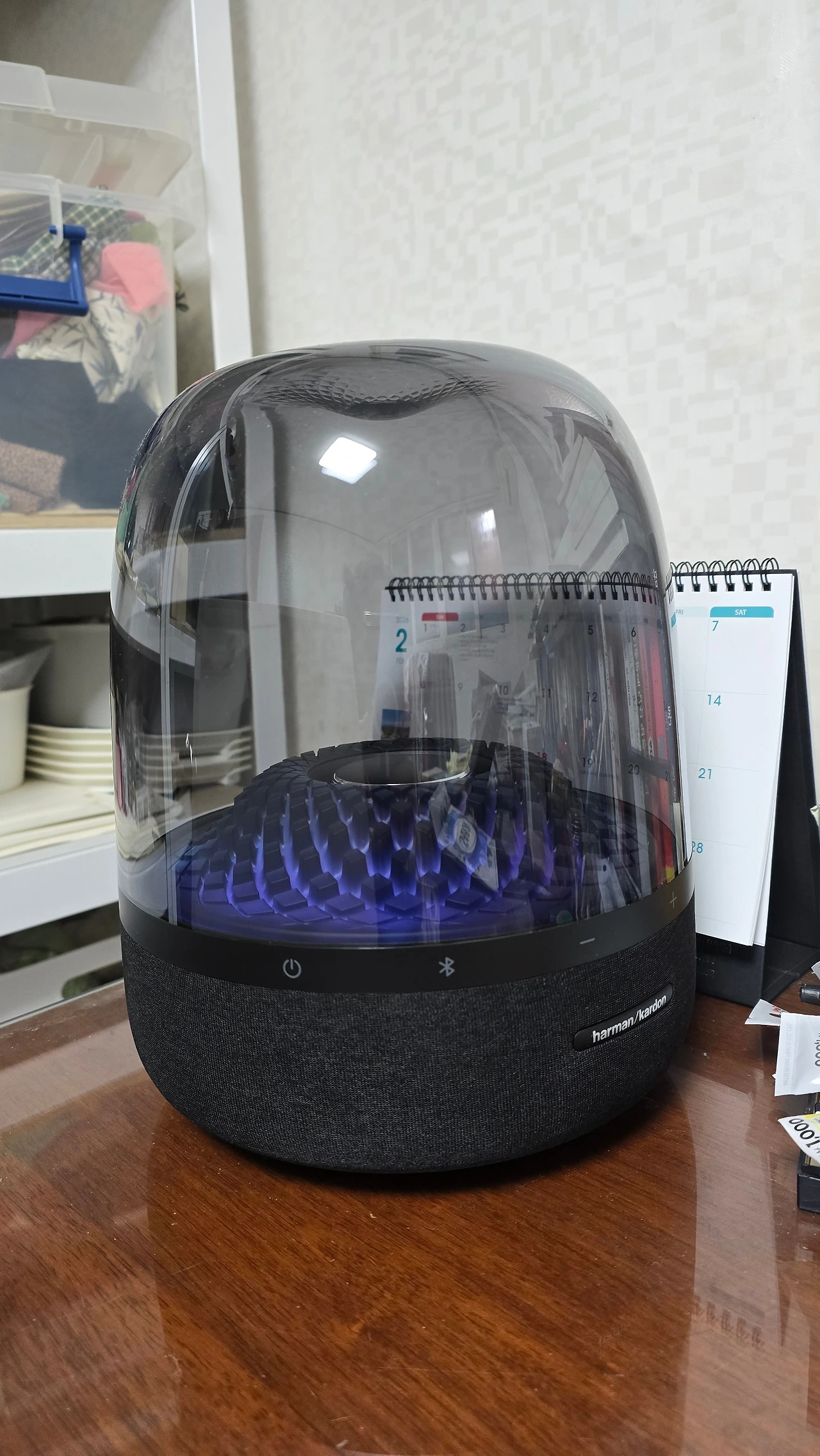 스피커 전원을 켜자 웅장하면서도 부드러운 소리가 방 안을 채운다.