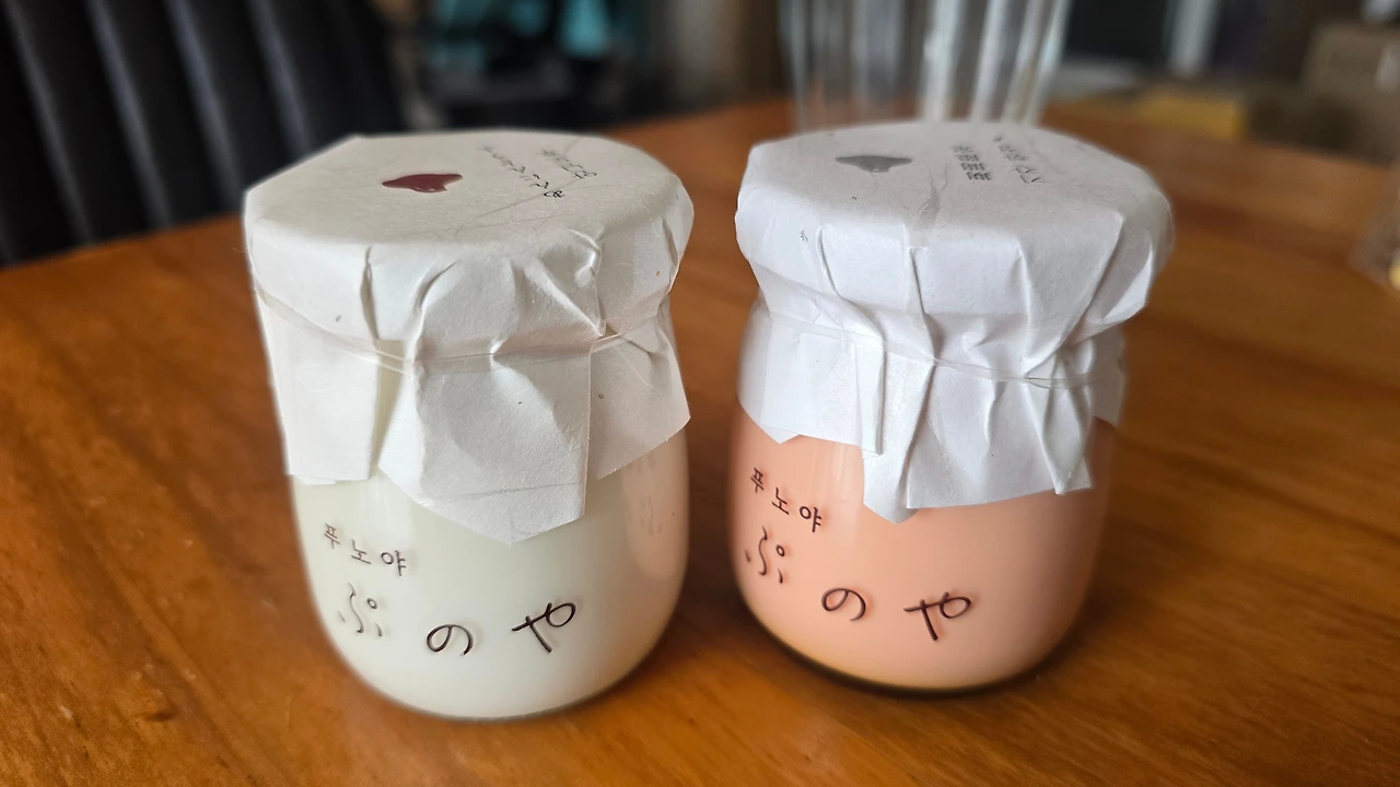 딸이 푸딩 가게 앞에서 걸음을 멈춘다.