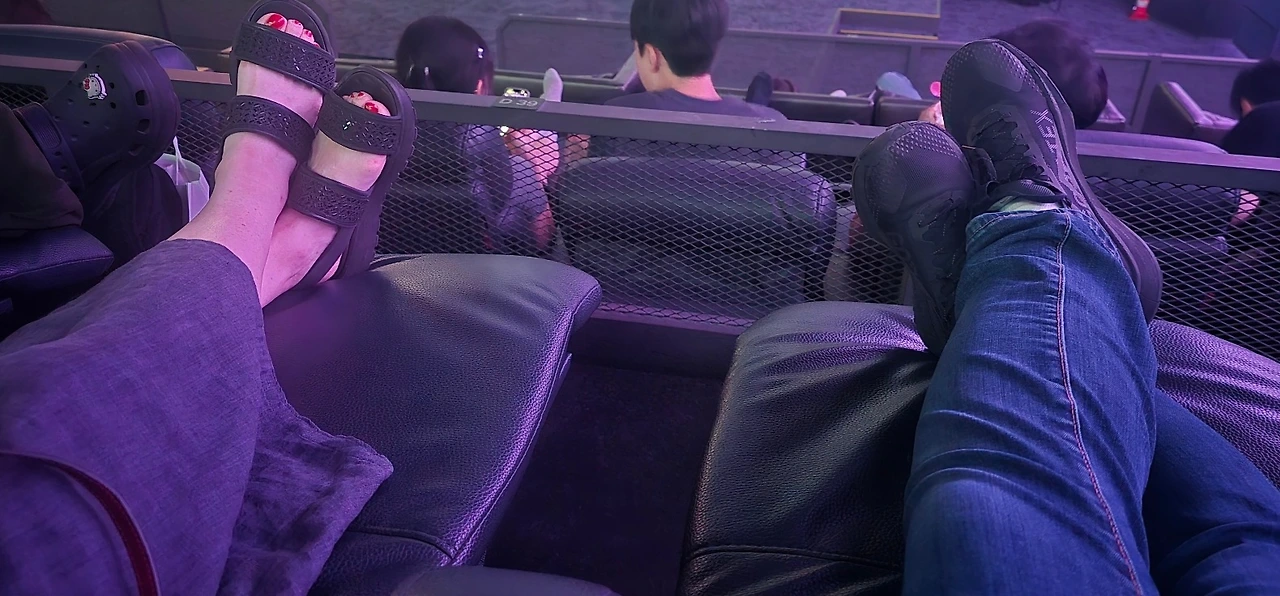 지난여름에도 둘이 "귀멸의 칼날"을 보았는데 그 좌석도 다리를 쭉 뻗고 편했었다.