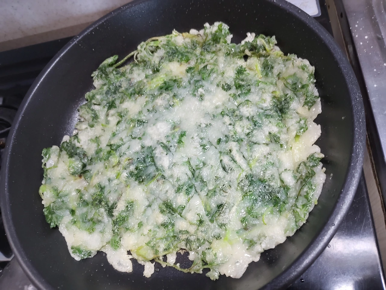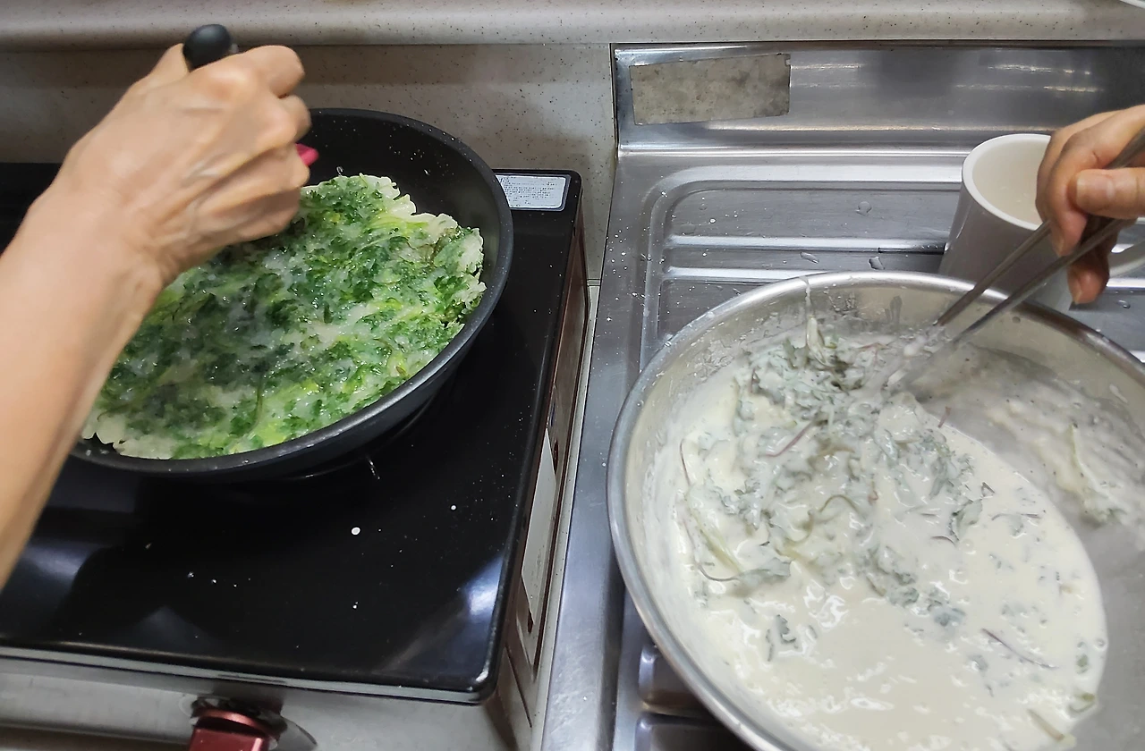 기름을 두른 팬 앞을 떠나지 못했고,