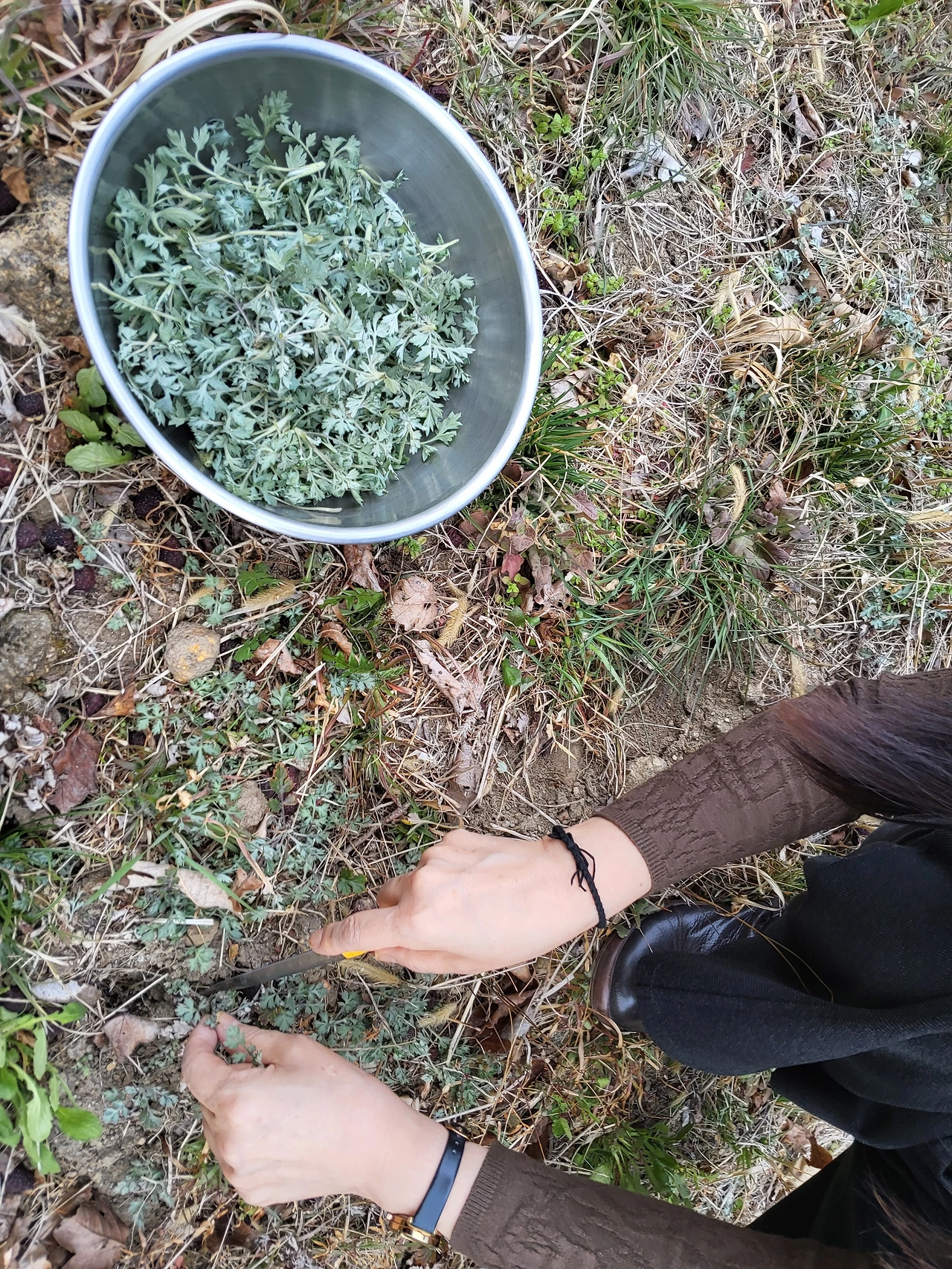 쑥을 캤다.