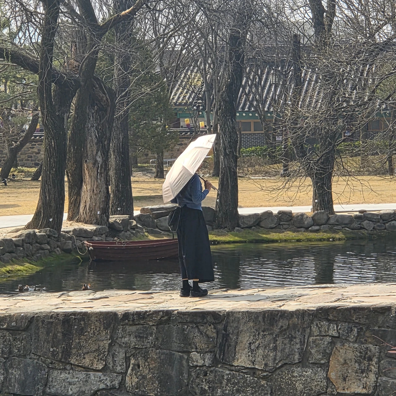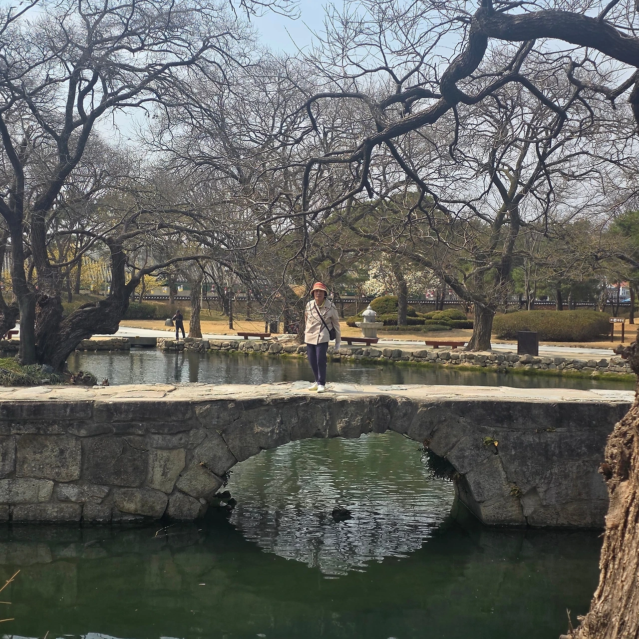 사람들은 다리를 건너고, 누군가는 한복을 입고 사진을 찍으며 웃고 있었다.