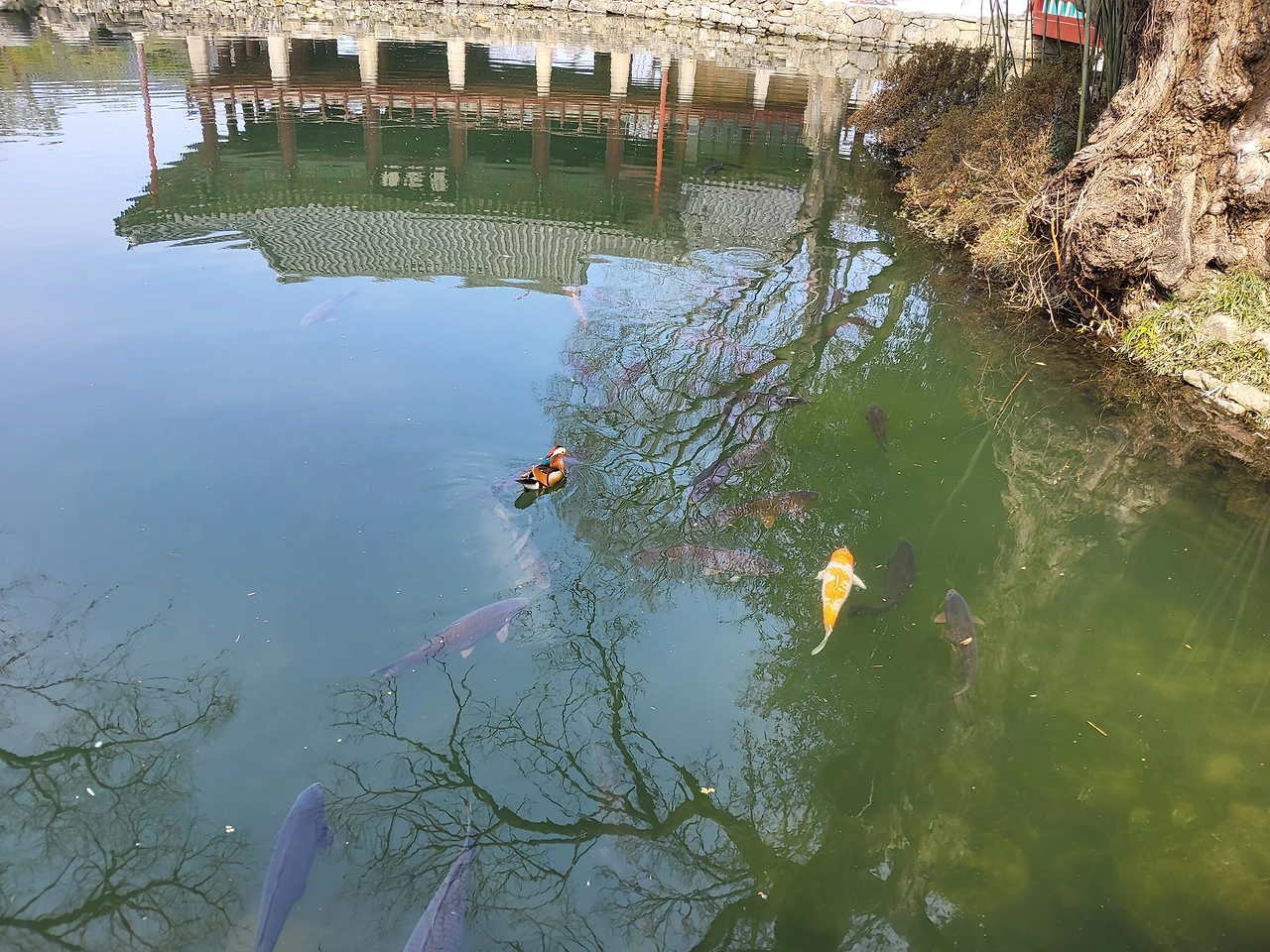 물속에는 팔뚝만 한 잉어들이 유유히 몸을 틀고 있었고,