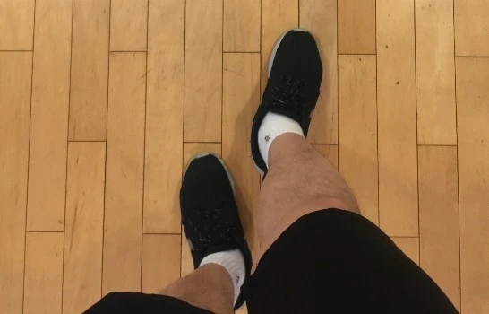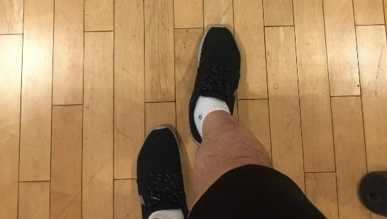 첫 번째 사진이 내가 자연스럽게 걸을 때의 오른쪽 발을 딛는 모습이고, 두 번째 사진은 좀 더 올바르게 걷기 위해 신경 쓰고 걸었을 때의 발을 딛는 모습이다. 바닥자제의 간격을 통해 첫번째 사진이 왼발과 오른발 둘다 각도가 많이 틀어져 있는 것을 확인 할 수 있었다.