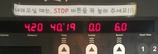 오늘의 유산소 운동도 골반 통증 때문에 빠른 경보 느낌으로 6.5km/h 의 속도로 40분간 진행하였는데, 나름 유산소 운동으로서 손색이 없었다. 인터넷을 찾아보니 6km/h의 속도로 빠른 걸음의 유산소 운동이 다이어트 운동에 도움이 많이 된다고도 하니 지금의 상황에 맞는 운동법을 찾은 샘이다.