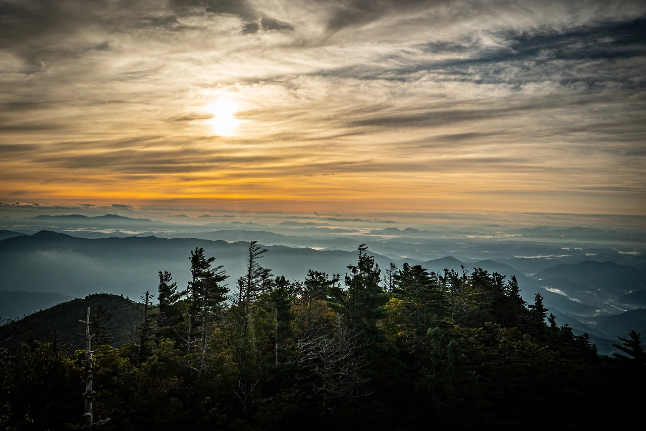 어두워지는 숲속에서 바쁜 발길을 잠시 멈추고 돌아본 반야봉은