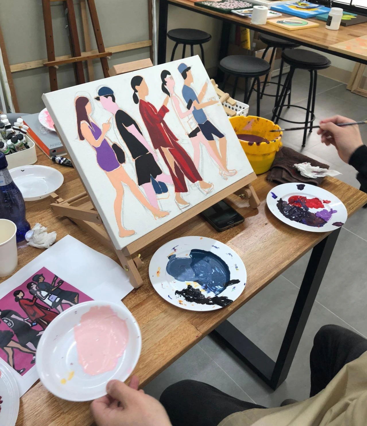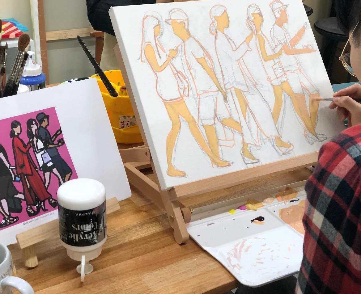 줄리안 오피 그림은 색 조화가 중요했다. 단순한 컬러로 쉽게 보이지만, 그 색을 구현하기 위해 섞고 또 섞어 누군가 유혹할 수 있게, 만들어 내는 게 이 그림의 과정이다. 색에서 표현되는 인물의 가치관 그리고 그들의 몸짓은 색을 통해 표현해 낼 수가 있어야 한다.