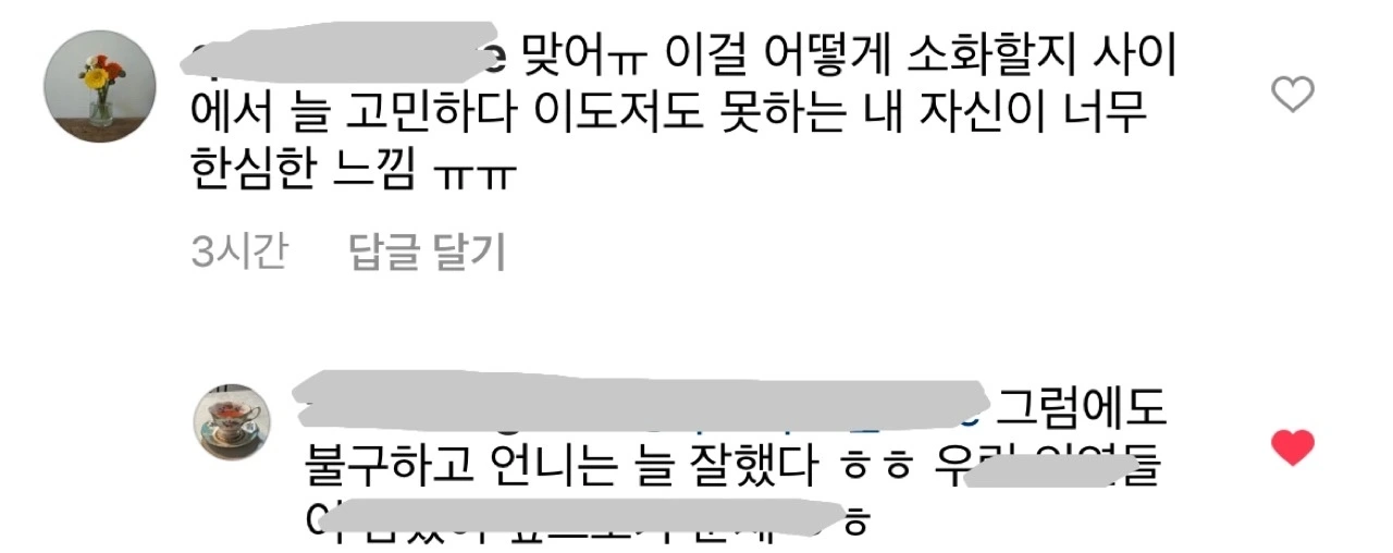 지금은 다른 회사 마케팅팀에서 일하고 있는 나의 든든한 전 직장 동생의 댓글을 보면서 그런 생각이 들었다. 설령 잘 못했다고 하더라도, 부족한 것 투성이었다 하더라도 그렇게 봐준 것 아닐까. 나라는 사람을 알고, 일에 대한 태도를 알고, 무엇을 하고 싶어 하는지 알기 때문에.
