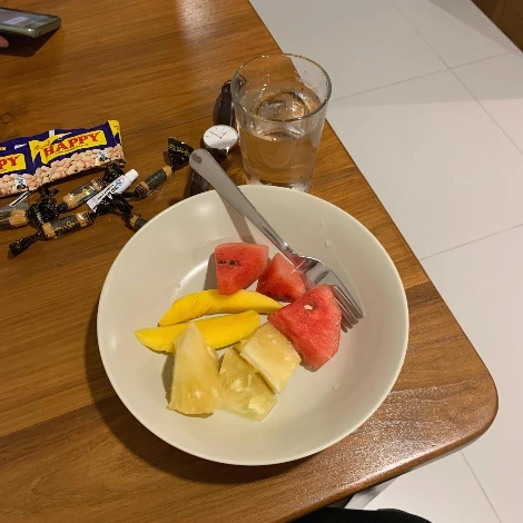 오늘은 일단 씻고 자자. 달고 시원한 과일로 긴장을 달래고.
