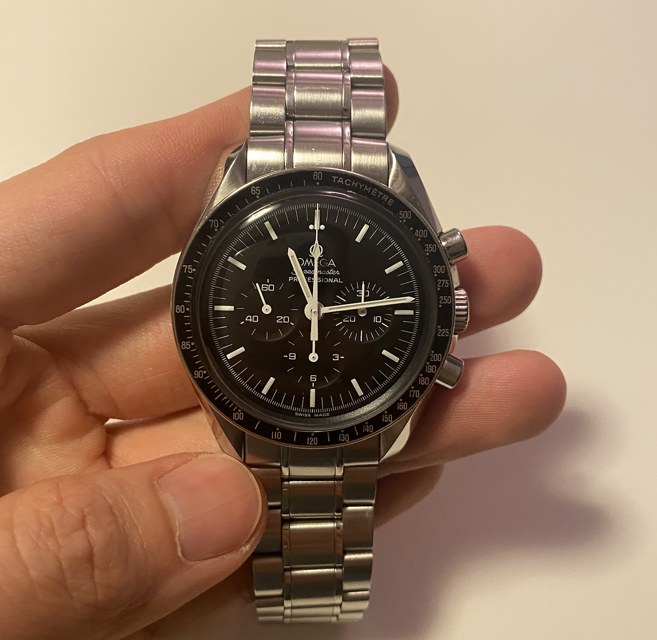 OMEGA Speedmaster (일명 Moonwatch) - 운모 ver.진정한 시계 마니아들은 운모 모델을 더 클래식하다고 여긴다. 실제로 달에 다녀온 모델이 운모기도 했고 누르스름한 다이얼의 아련한 향수를 자극하는 따뜻한 느낌이 이 시계의 레거시와 일치한다.
