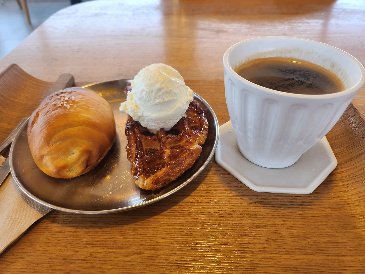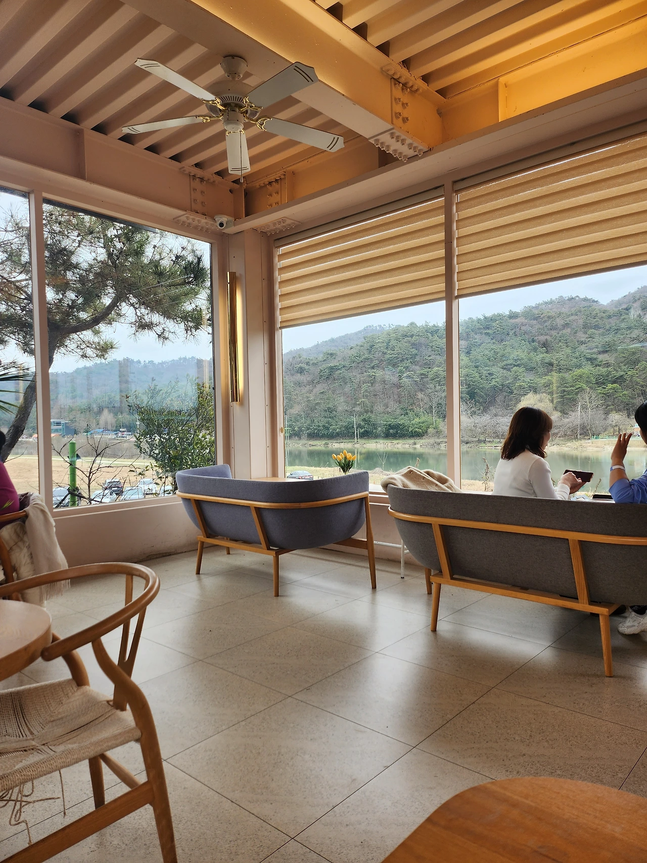일부러 멀리 있는 카페를 골라 버스를 약 40분 타고 도착해서 통창 너머 강을 보며 커피를 마시고 요기를 했다.