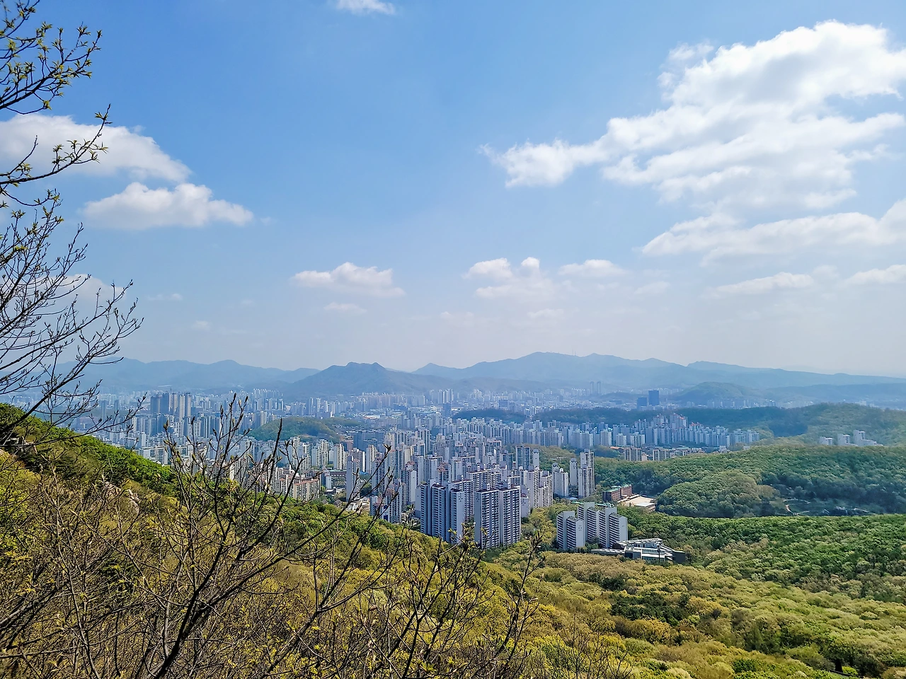 1층 현관으로 나와 몇 발자국만 걸으면 바로 아파트 뒤로 우뚝 솟아있는 산이 보이고 근처에 생태공원도 있어서 평일 저녁이나 휴일에 산책하러 나가기에 좋다.