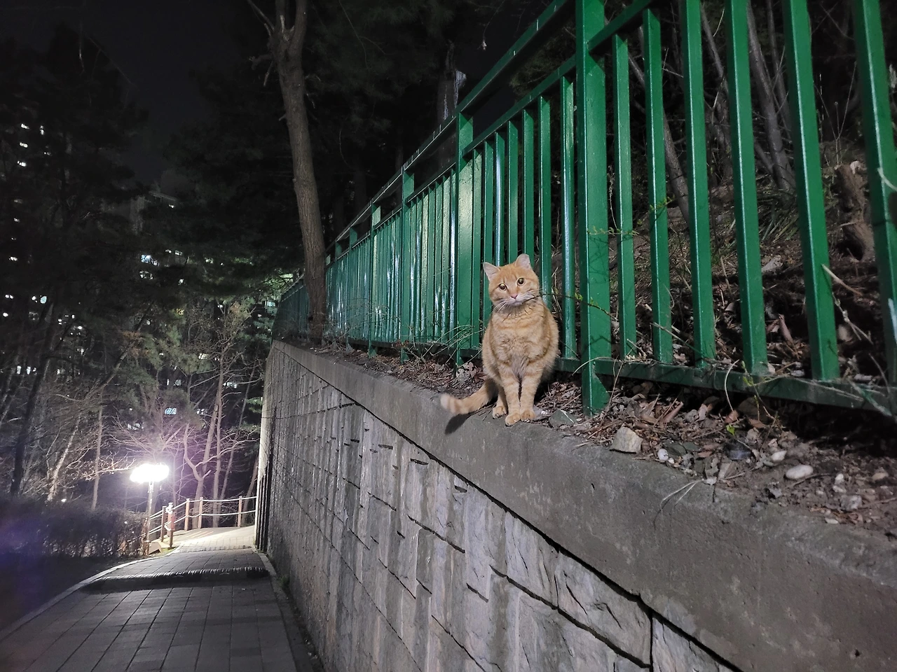 집에 와서 사진을 봤더니 참 예쁘게 잘 나왔다. 중성화를 했는지 귀 커팅이 되어 있고 눈을 동그랗게 뜬 체 꼬리를 살랑살랑 흔들고 있던 녀석. 이 사진을 보고 있으니 작년 말에 사라진 회사 길냥이가 생각났다. 어느 날 갑자기 회사에 나타나 객식구가 되었다가 또 그렇게 갑자기 사라져 버린 녀석. 그 녀석도 치즈냥이었는데 함께 있었다면 왠지 딱 이 정도 덩치가 되어있을 것 같았다.