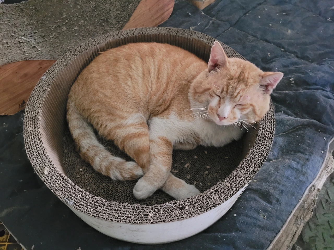 말썽쟁이 치즈냥도 여전히 잘 지내고 있다.