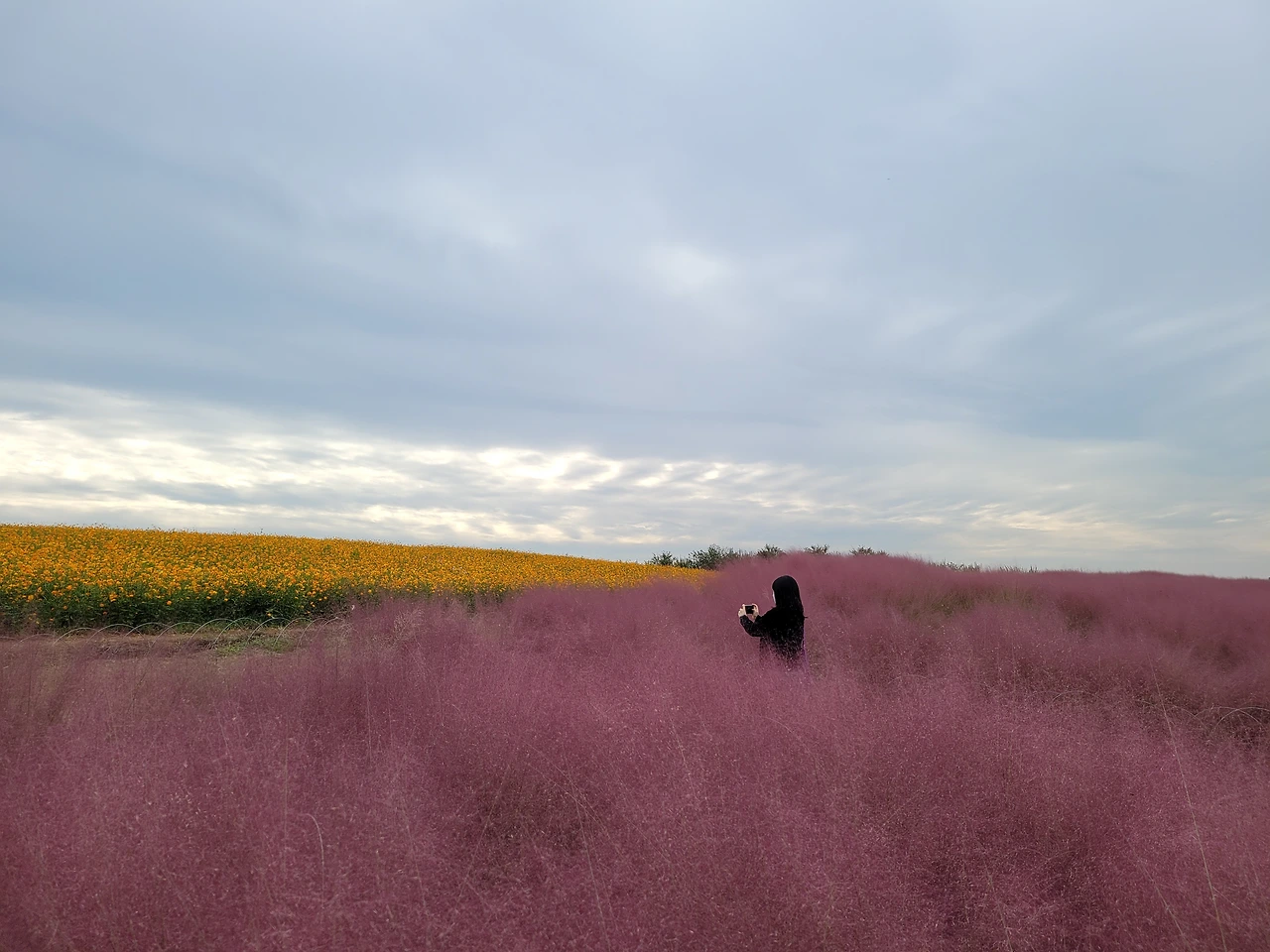 그런데 언젠가부터 가을 하면 핑크뮬리와 억새가 가장 먼저 떠오르기 시작했다. 이게 언제부터였는지는 모르겠는데 SNS에 가을을 검색해 보면 핑크뮬리와 억새, 이 두 가지 사진들 천지다. 그렇담 나도 한 장 찍어주는 게 예의 아닌가.