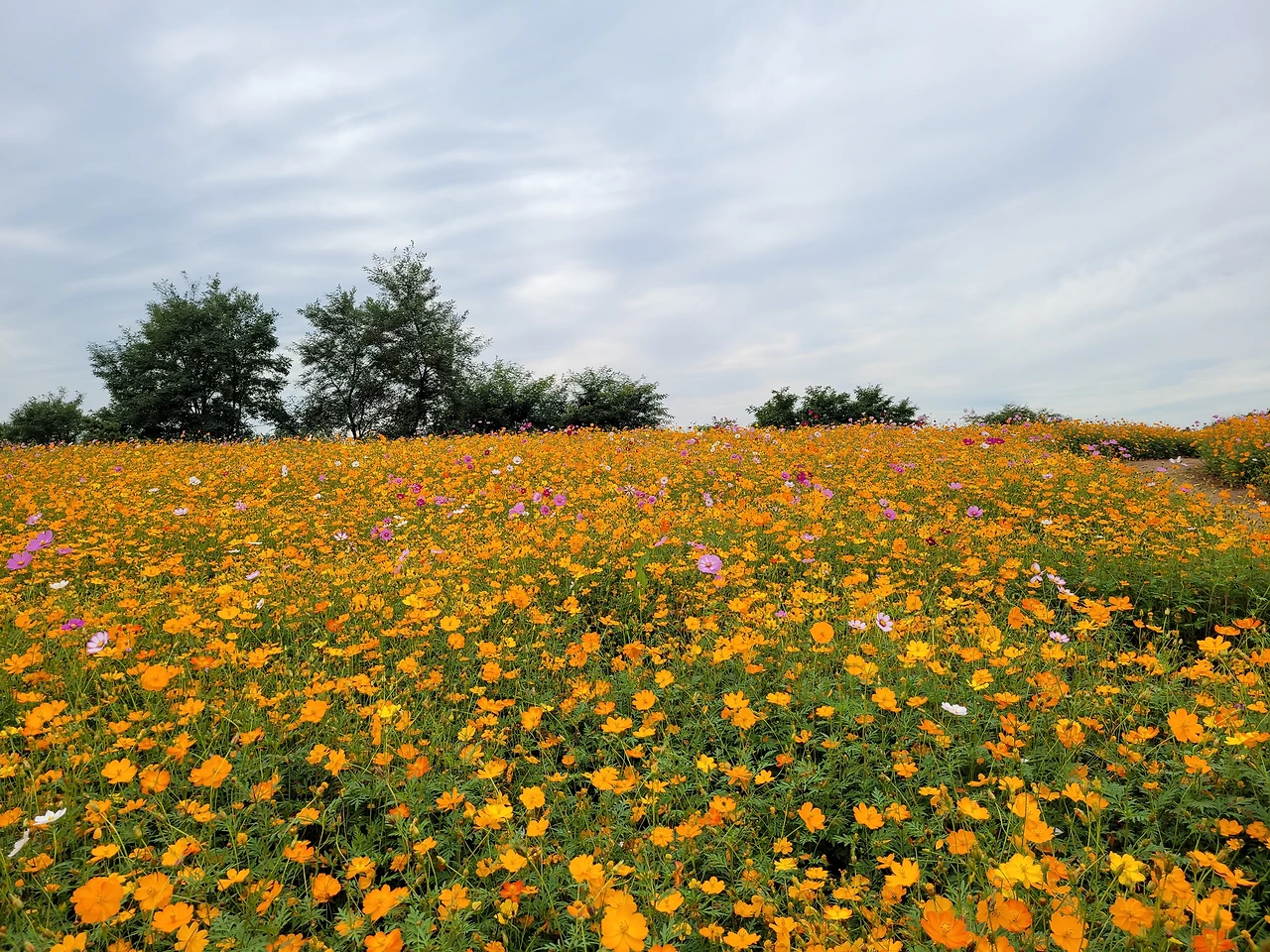 먹구름에 해가 가려져 흐리고 바람도 강했지만 넓은 들판에 피어있는 꽃들은 정말 예뻤다. 먼저 코스모스를 볼 수 있었는데 예전 내 마음속 가을 이미지를 가득 채워주던 그 모습을 오랜만에 직접 보니 감회가 참 새로웠다. 바람에 하늘 거리는 코스모스. 귓가에 이승환의 '흑백영화처럼' 노래가 자동 재생된다.