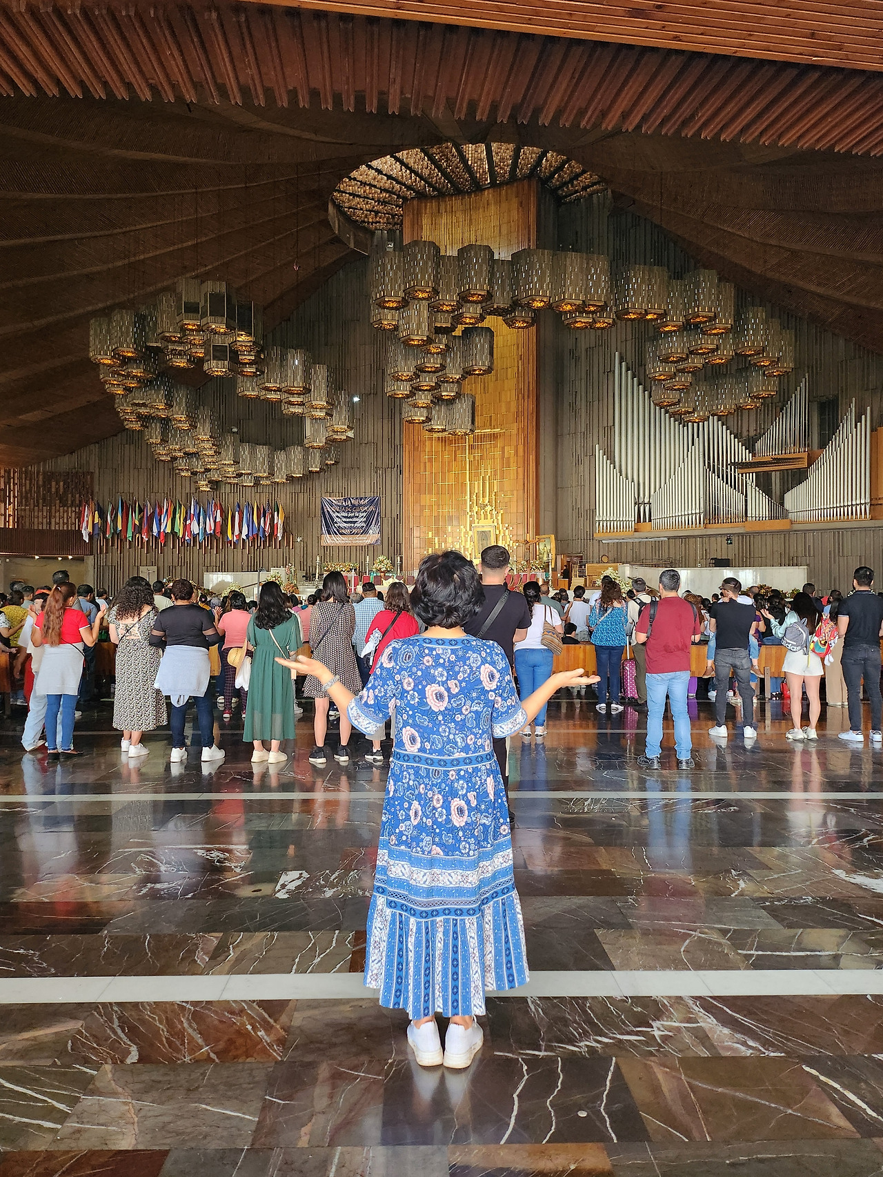 과달루페 성당은 지형적 특징으로 지반이 침하되고 있어 성당이 점점 침식되어 성당을 폐쇄하고 그 옆에 거대한 새로운 성당을 지었다. 이름하여 뉴 바실리카성당. 규모가 엄청났다. 지붕은 꼭 체육관 같아서 조화롭지 못하서 낯선 느낌이기는 했다. 내가 방문한 날은 화요일이라 종교적 행사가 있는 날이 아니라 생각했는데 성당에선 미사가 이루어지고 있었고 사람이 엄청 많았다. 나도 그 자리에 슬그머니 끼어들었다. 뭔지 모르지만 성스러운 느낌이 스며들었다. 무슨 일인지 알고 싶었는데 알지 못한 아쉬움이 남았다. 언어의 벽을 실감하며.