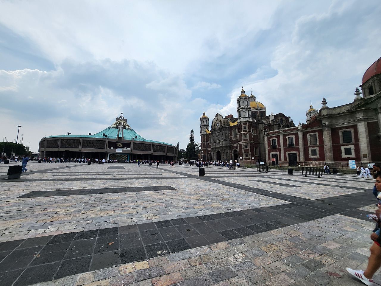 우버가 내린 곳은 성당의 뒤쪽이었다. 한가하고 걷기가 좋았다. 사람들을 따라가다 보니 커다란 성당이 나왔다. 새로 지어진 대성당. 뉴 바실리카 성당. 이름이 지어진 유래?를 살펴보면 1904년 교황청에서 바실리카라는 이름으로 명명되었다 한다. 그런데 우리는 과달루페 성모발현 성당으로 알고 왔다. 민박집 사장님도 그렇게 부르는 것을 보면 과달루페 성당이라는 이름이 일반적인가 보다.