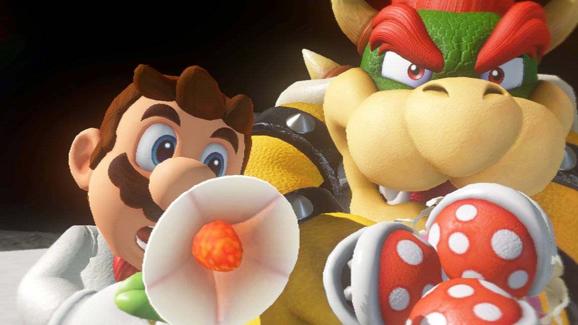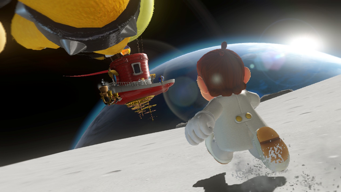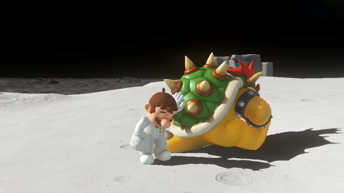 그렇게 오디세이호에 몸을 실은 피치공주는 갑자기 뒤돌아, 망연자실한 마리오와 쿠파를 바라본다. 그리고는 싱긋 웃으며 누군가를 부른다. 나는 이 순간을 '피치공주의 어장관리'라고 표현했고, 아내는 '피치공주가 여시 짓을 한다'라고 말했다. 오디세이호는 달 표면을 딛고 날아오르고, 피치공주의 미소에 홀린 둘은 또다시 필사적으로 오디세이호를 향해 몸을 던졌다. 쿠파의 머리를 밟고 오디세이호에 올라탄 마리오의 승리.