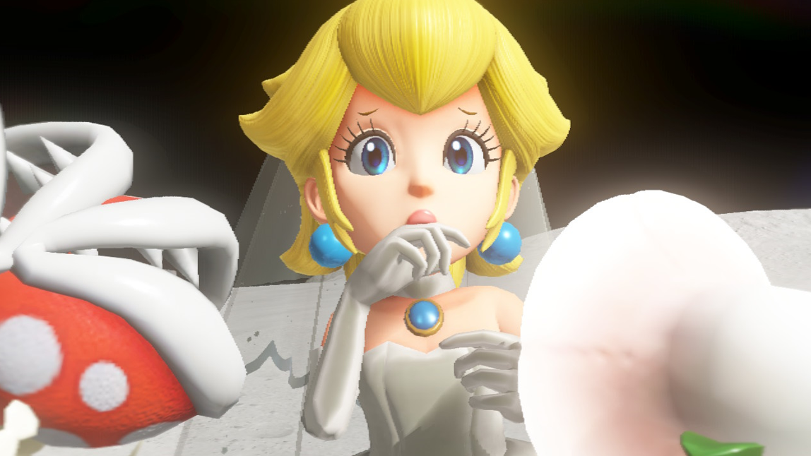 게임 후반, 마리오는 달 왕국의 결혼식장으로 피치공주를 구하기 위해 떠난다. 그리고는, 결혼식장 문을 박차고 당당하게 들어선다. 그런데, 그의 옷이 이상하다. 하얀색 턱시도? 나와 아내는 둘 다 터지는 웃음을 막을 수 없었다. "아무리 게임이지만, 이건 너무 비매너 아냐?" 납치당한 공주를 구하고 자신의 사랑을 되찾겠다는 그의 본심은 이해하지만, 쿠파가 차려놓은 결혼식장에 밥 숟가락만 얹겠다는 저 파렴치한 태도를 이해할 수 없었다.
