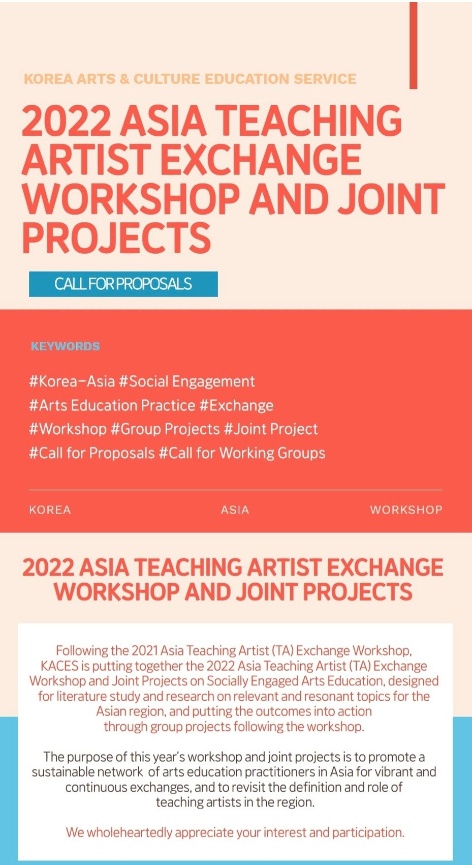 나의 부족함에도 불구하고 많은 해외 경험과 해외에 있는 친구들 덕분에 소통에서 가장 중요한 건 다름 아닌 Soul이라는 것을 배웠으니 말이다. 말하지 않아도 알 수 있는 그 고귀한 마음 말이다. 작년인 2021년에 아르떼(한국문화예술교육진흥원)에서 진행하는 Asia Ta Workshop을 참여했었고, 그에 이어 2022년 Asia Teaching Artist Exchange Workshop and Joint project공고를 보고 작년에 워크숍에서 한 팀이었던 싱가포르 언니에게 배짱 있게 연락해 함께 해보지 않겠느냐고 제안했다. 물론 싱가포르가 제1 언어가 영어이기도 하고, 언니는 이미 영국 등 다양한 해외에서 공부해서 영어 실력은 월등하고, 사실 말도 정말 빠른 편이었다. 내가 언니의 말을 반 정도 알아듣나..? 에서 시작했다. 그래도 영혼이 통하는 건 완전 다른 일이다. 모두 알지 않는가. 같은 한국말을 해도 대화가 통화지 않는 사람들은 어쩔 수 없는 것. 영혼의 짝꿍이었던 싱가포르 언니는 나이스 하게 오케이를 했고 그렇게 우리는 프로포절을 함께 완성해서 합격까지 하게 되었다. 덕분에 내 영어 실력도 함께 Up 되었다. 어느 순간 언니와 말하는 것들이 너무 편했고, 들리지 않던 문장들이 이해되는 시간이 다가왔다. 역시 언어 공부는 반복이 핵심인가 보다. 열심히 회의를 하다 보니 나를 둘러싼 두려움이 뚝 사라져 버렸다.