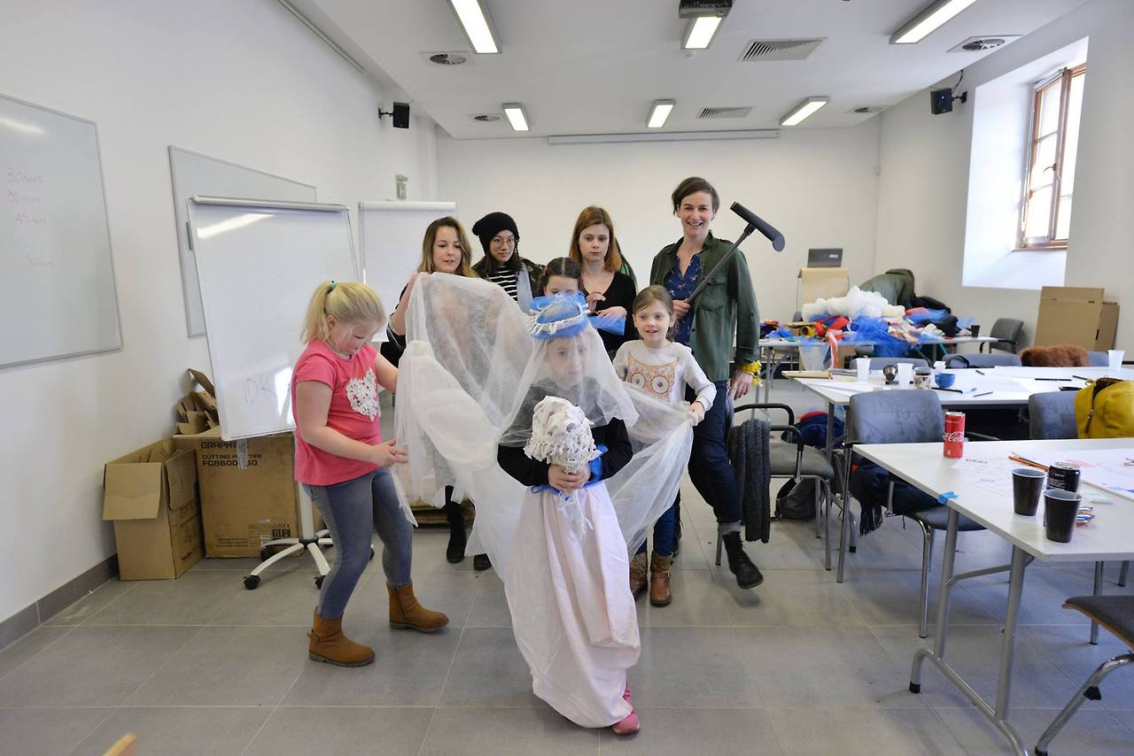 그리고 워크숍을 물품을 준비할 때는 ID KIELCE 건물 창고에 있는 물품들을 주로 활용했고 건물을 돌아다니며 직접 원하는 놀이터를 몸으로 표현하고, 그림도 그려고, 버려진 천들이나 역할극을 진행해 보며 등등 다양한 워크숍을 진행했다.